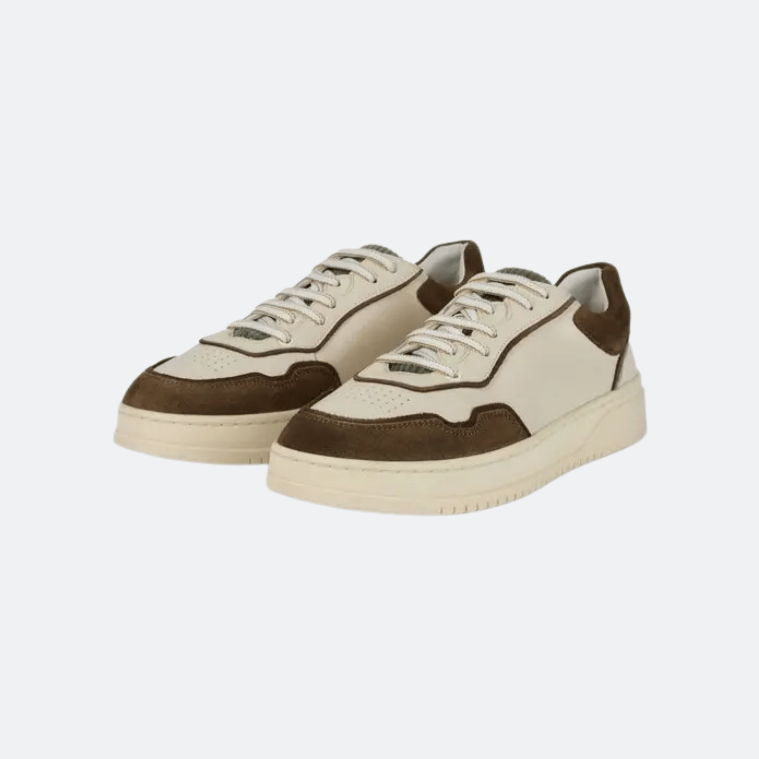 Crafted with a refined blend of smooth leather and suede panels, these Boggi Milano sneakers offer a timeless yet contemporary look. The cream leather upper is accented with deep brown suede overlays for subtle contrast, while the cushioned rubber sole ensures all-day comfort. Designed for versatile styling, they pair effortlessly with tailored trousers or casual chinos for an elevated everyday wardrobe.