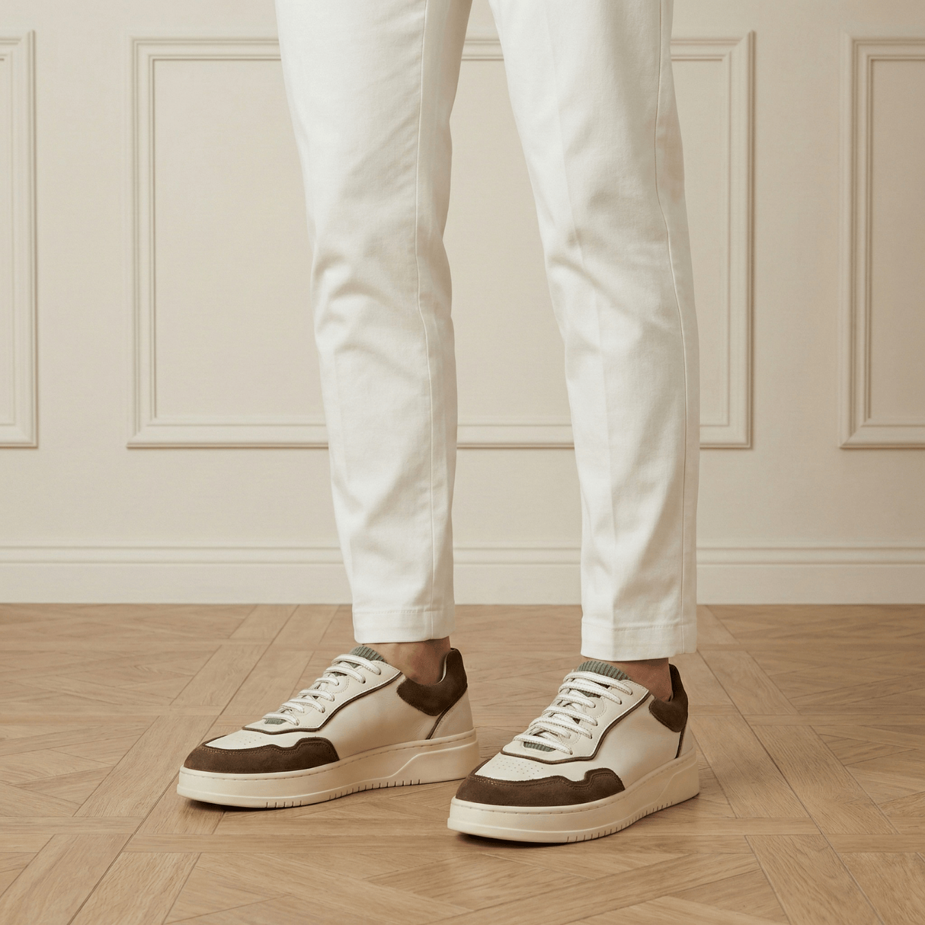 Boggi Milano Panelled Leather Sneakers – Cream & Brown