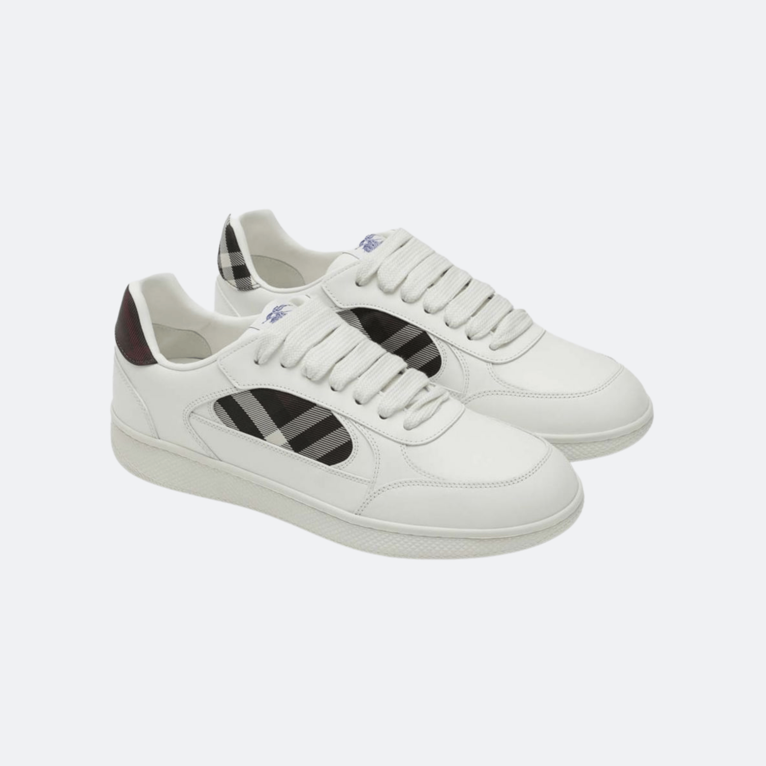 Burberry Check Panel Leather Sneakers – White