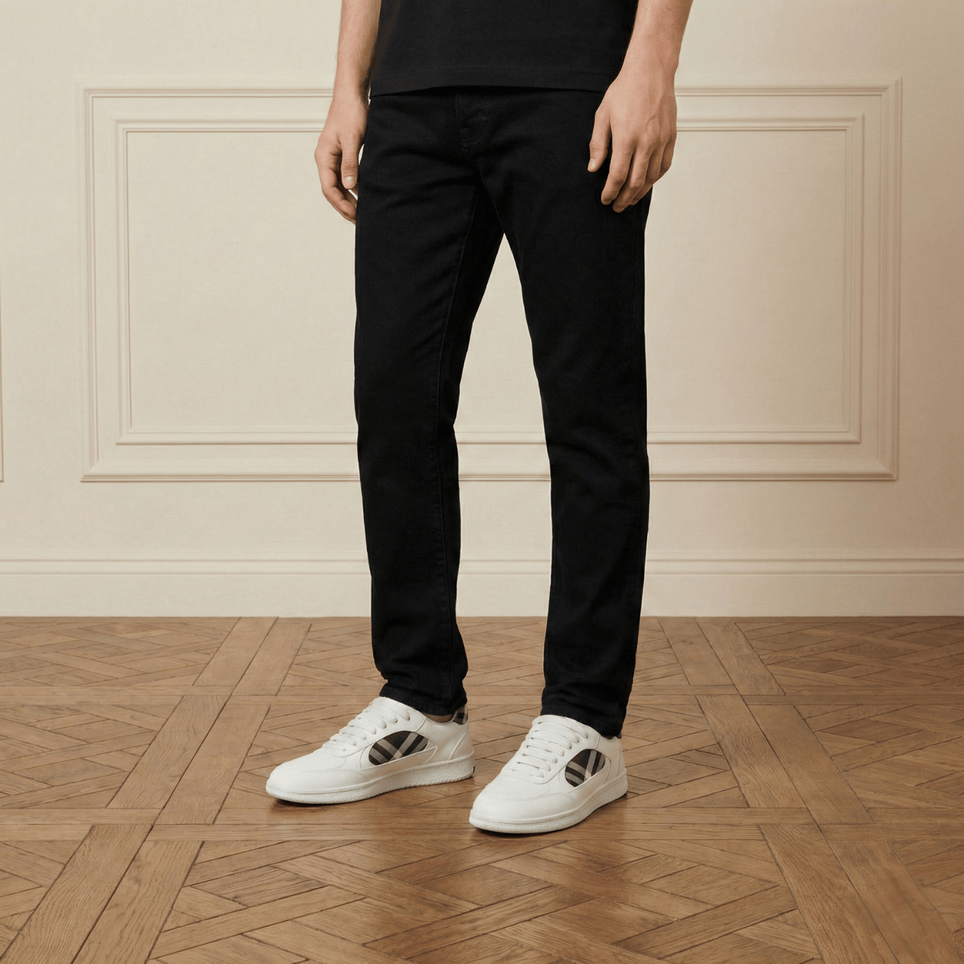 Contemporary low-top sneakers crafted from smooth leather, featuring Burberry’s signature Vintage Check side panels. A clean, minimalist silhouette is paired with a durable rubber sole for everyday comfort. Subtle branding and refined construction make this model ideal for smart-casual styling.