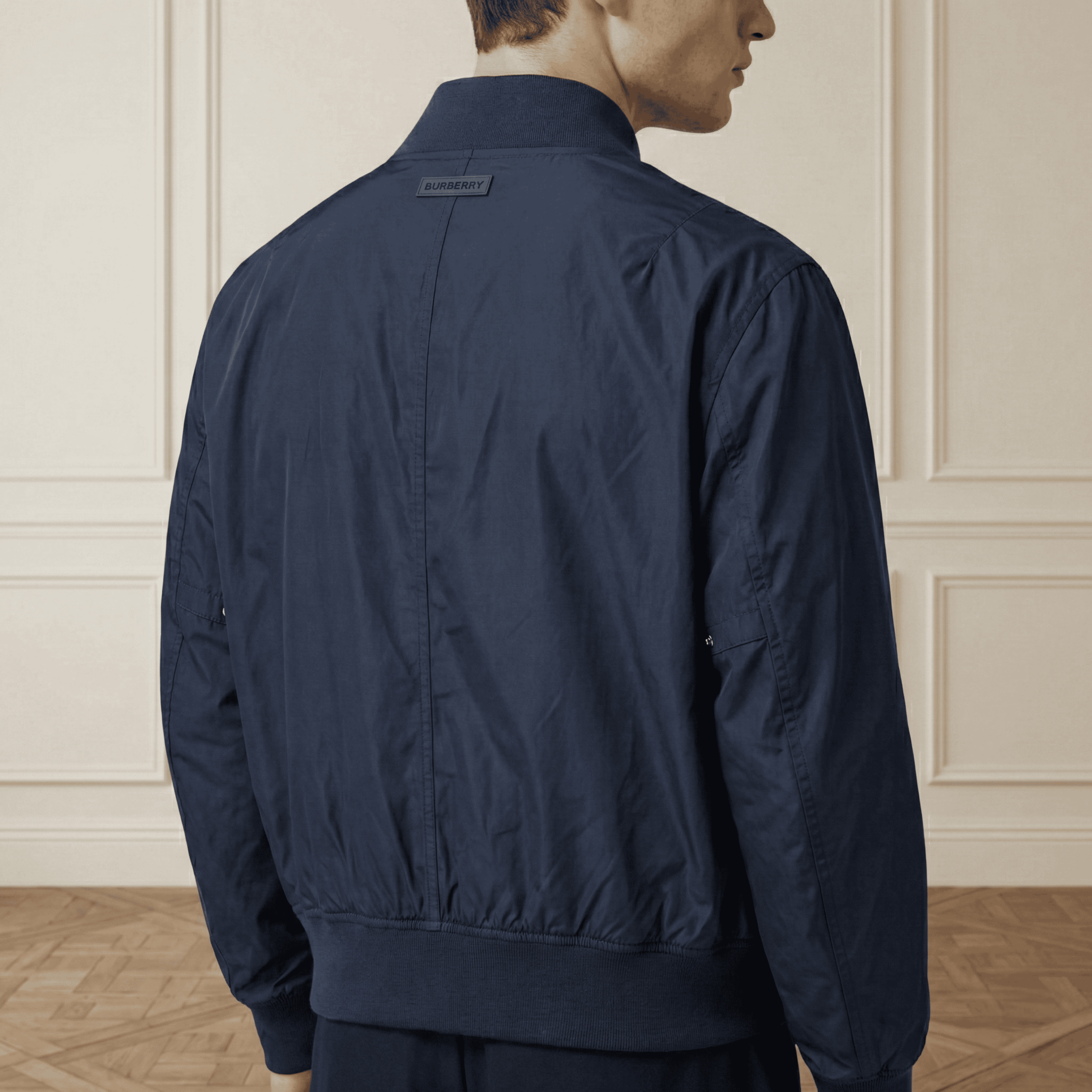 A refined bomber jacket crafted from lightweight technical fabric, finished with ribbed trims and a clean zip-front closure. Designed with a streamlined silhouette and Burberry’s signature check lining, this versatile piece offers modern functionality with timeless British elegance.