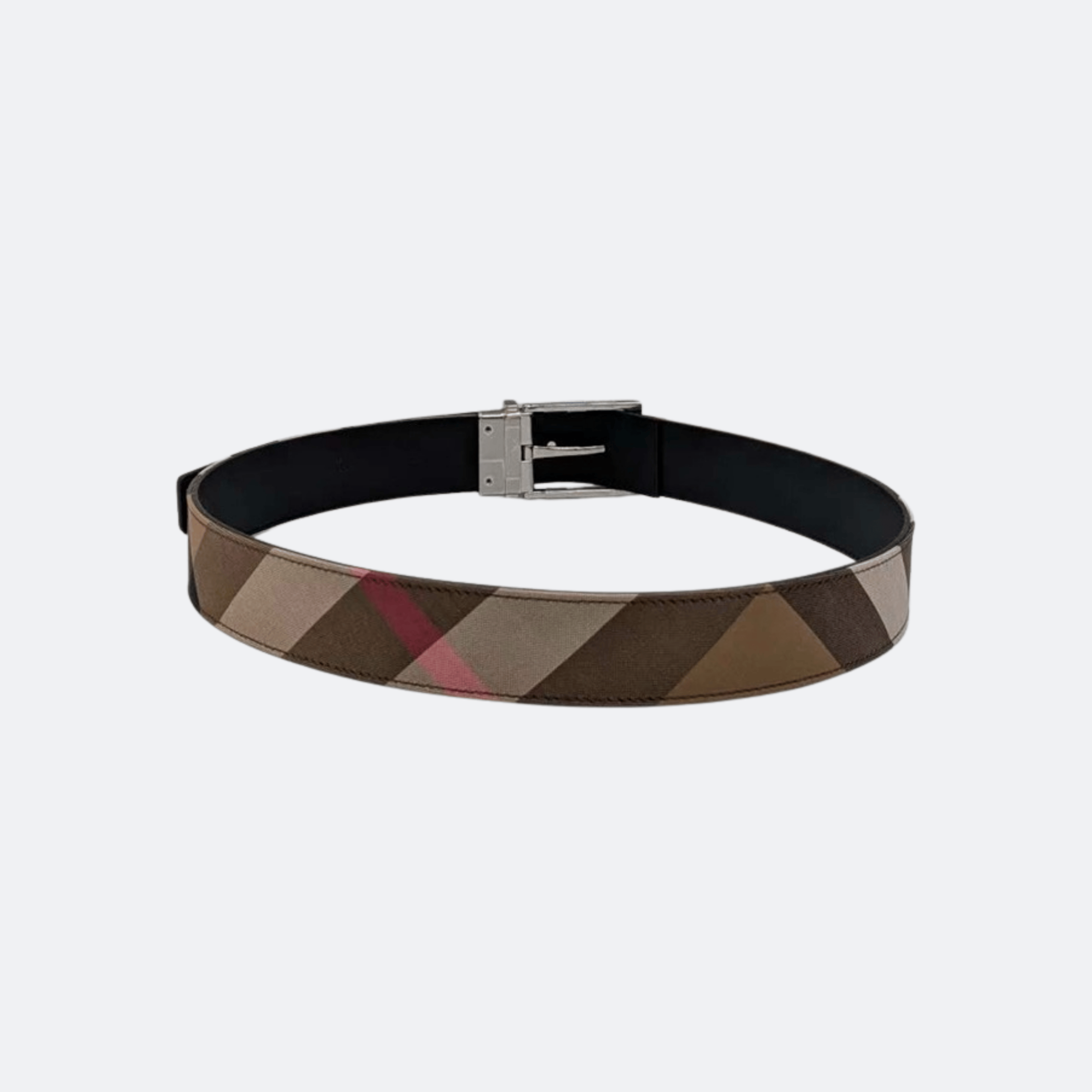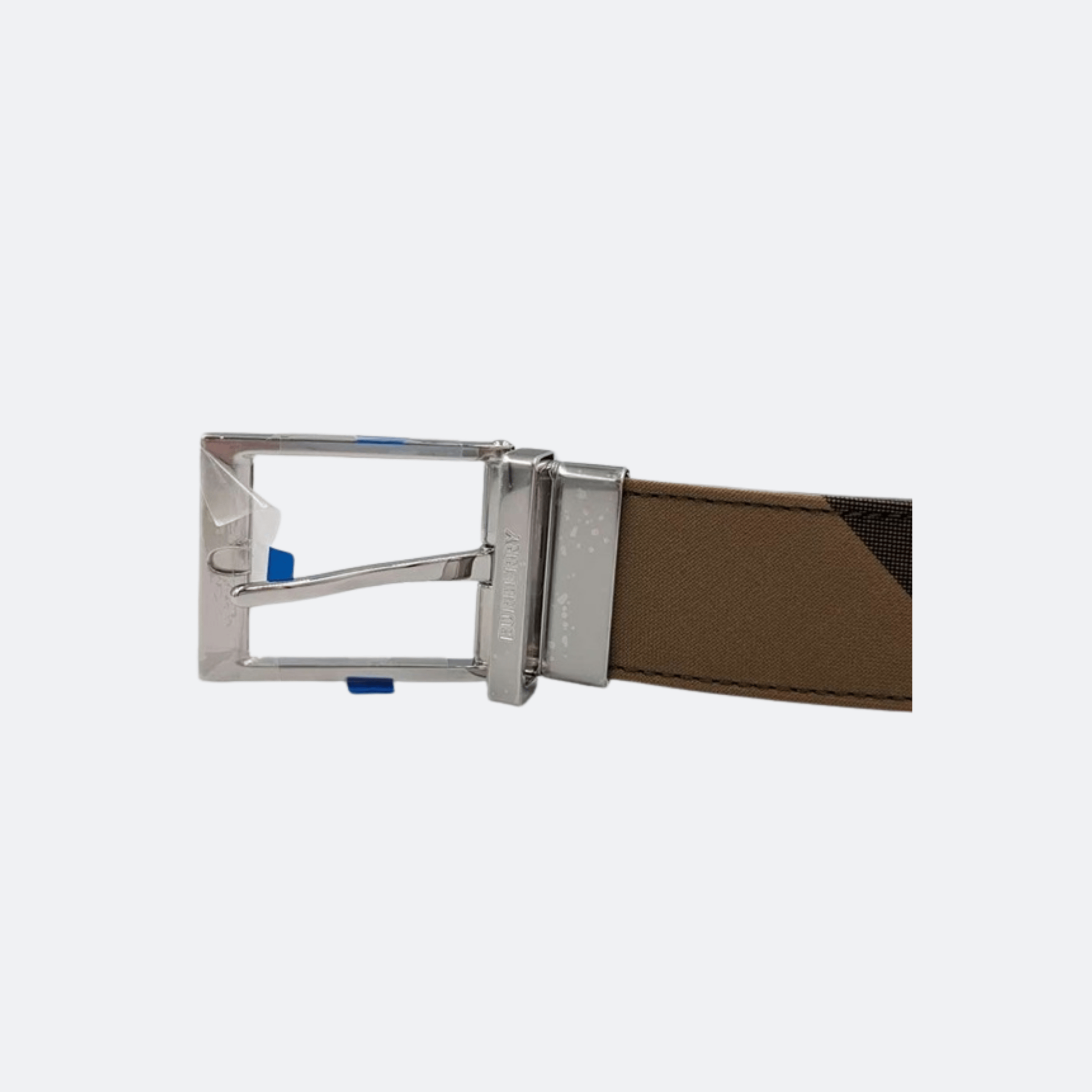 Crafted from premium materials, the belt is constructed with smooth calf leather on one side for a sleek minimalist look, while the reverse side showcases Burberry’s signature coated canvas check. The buckle is made from high-quality palladium-tone metal, engineered for durability and a refined polished appearance. Precision stitching and edge finishing ensure long-lasting wear while maintaining the luxury aesthetic expected from Burberry accessories.