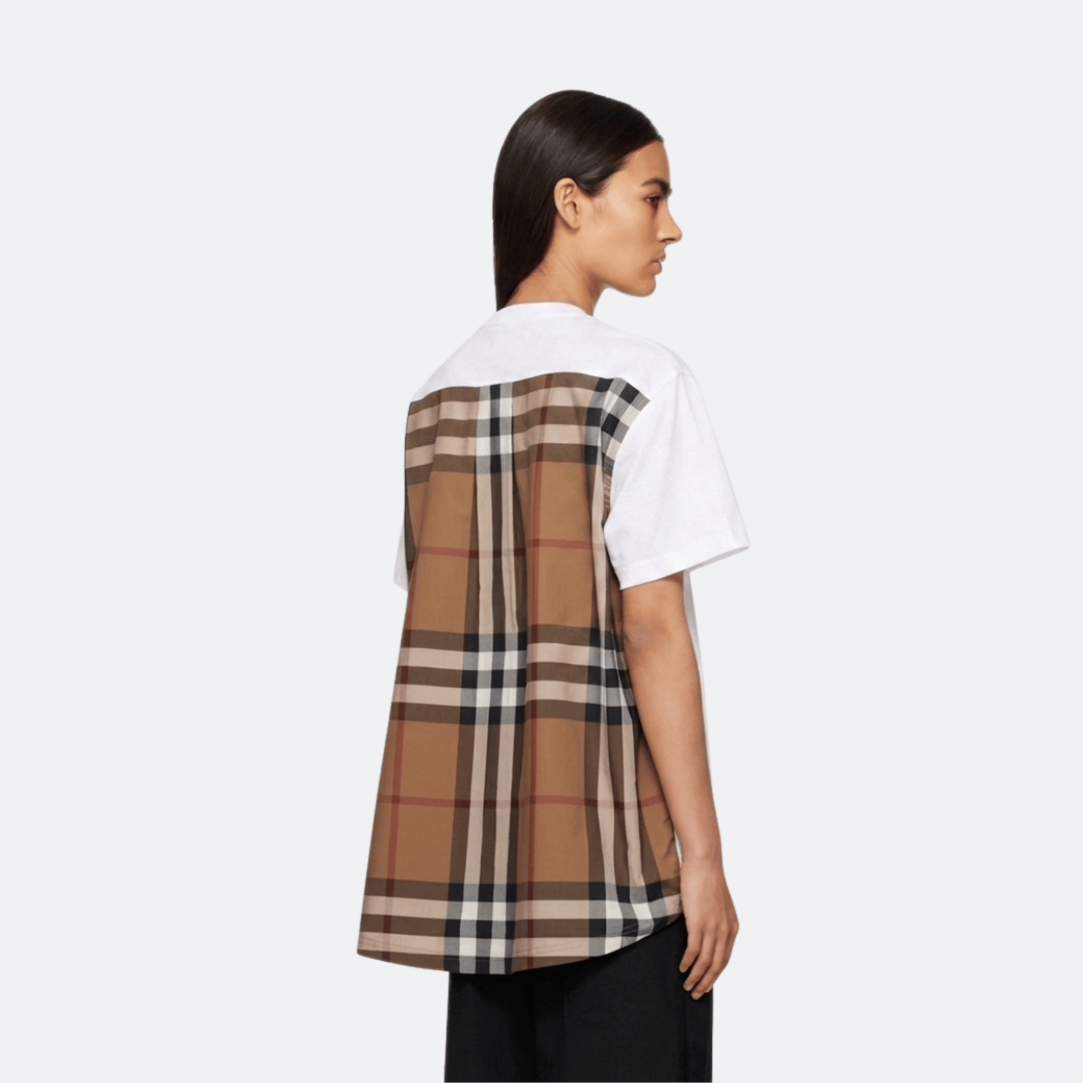 A modern reinterpretation of a wardrobe essential, this Burberry paneled T-shirt is crafted from soft cotton and elevated with the brand’s iconic beige check panel at the back. The relaxed silhouette and minimalist front contrast with the statement heritage detailing, making it a versatile piece that blends contemporary style with classic British identity.