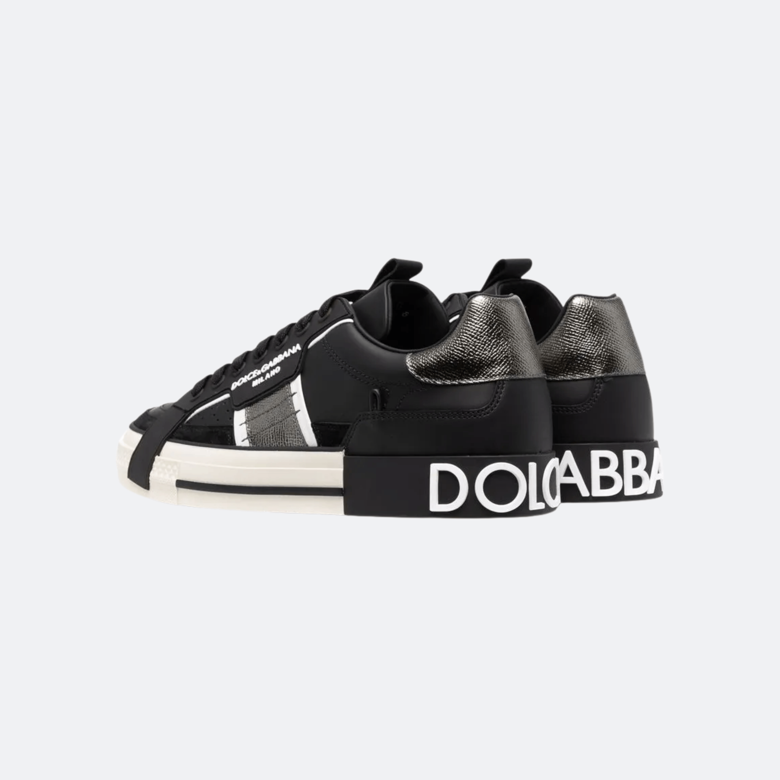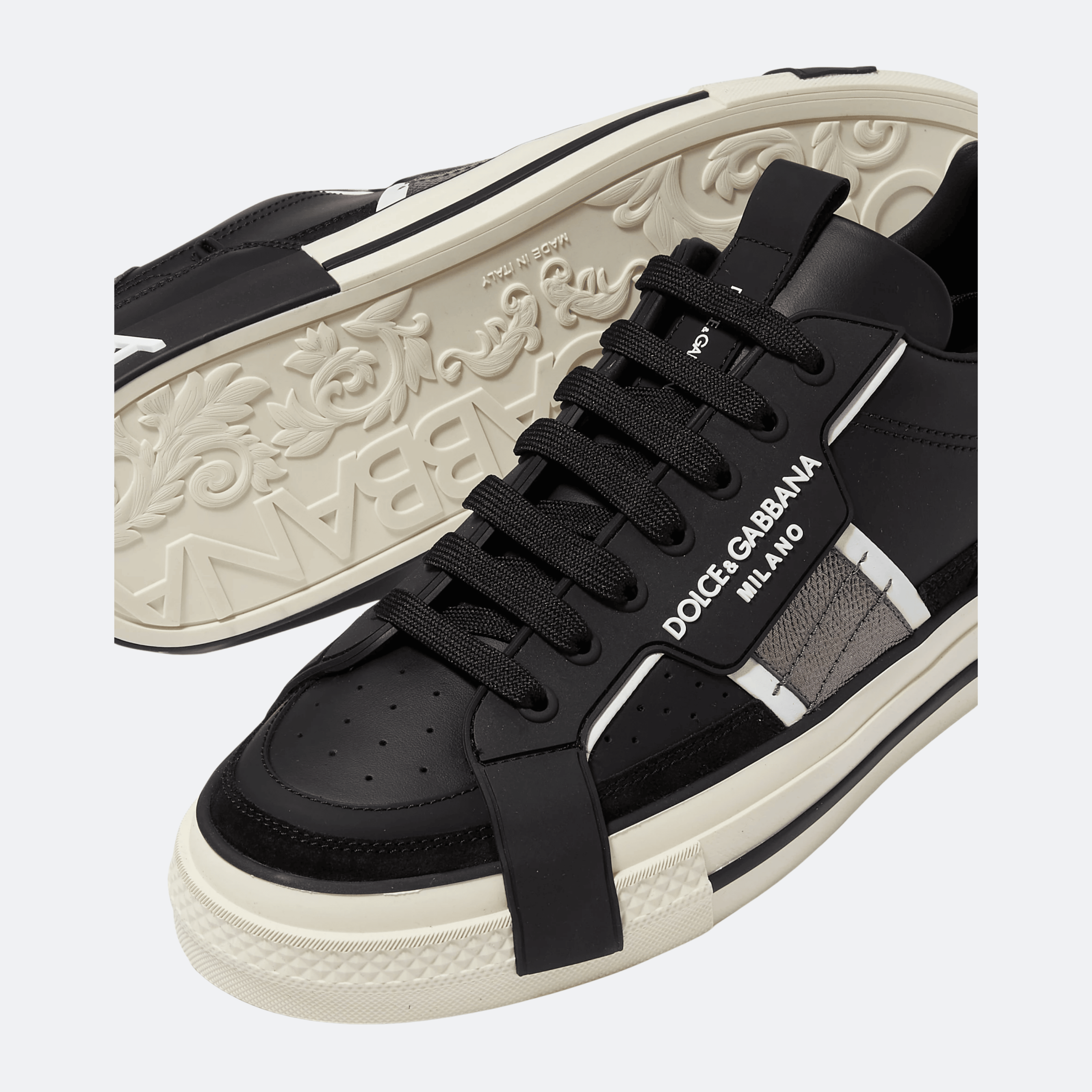 The Dolce & Gabbana Custom 2.Zero Sneakers in Black deliver a bold, contemporary statement rooted in Italian craftsmanship. Designed with graphic branding and contrast sole detailing, this model merges urban attitude with refined luxury. The structured low-top silhouette and signature logo accents make it a standout piece for elevated streetwear and modern casual styling.