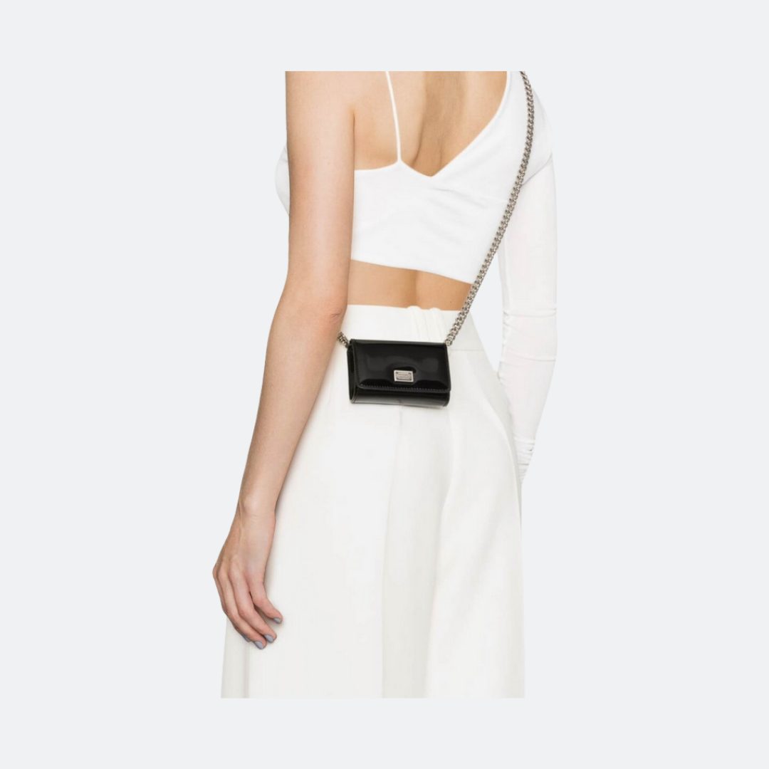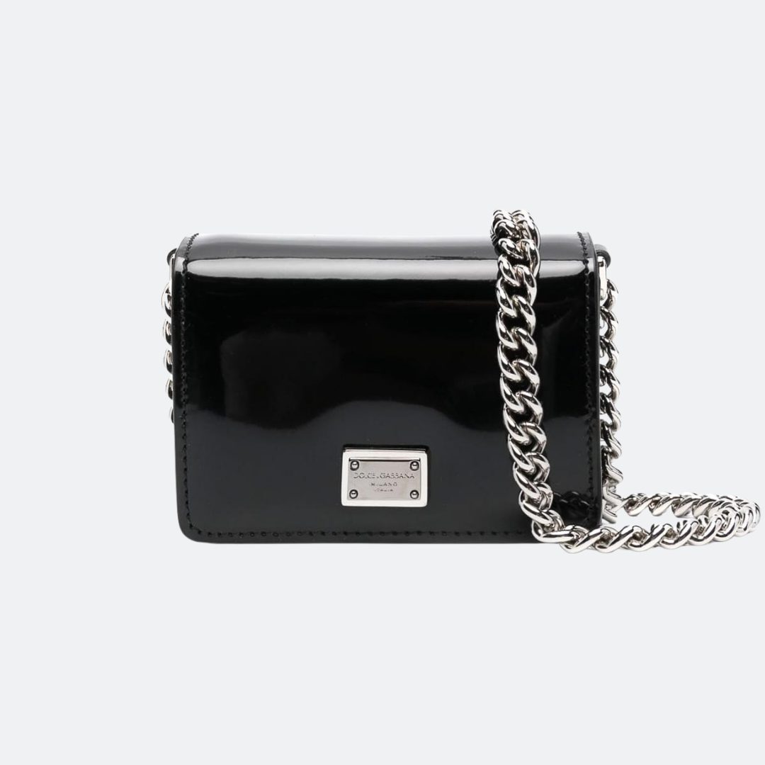 Dolce & Gabbana Logo Plaque Black Patent Leather Mini Shoulder Bag