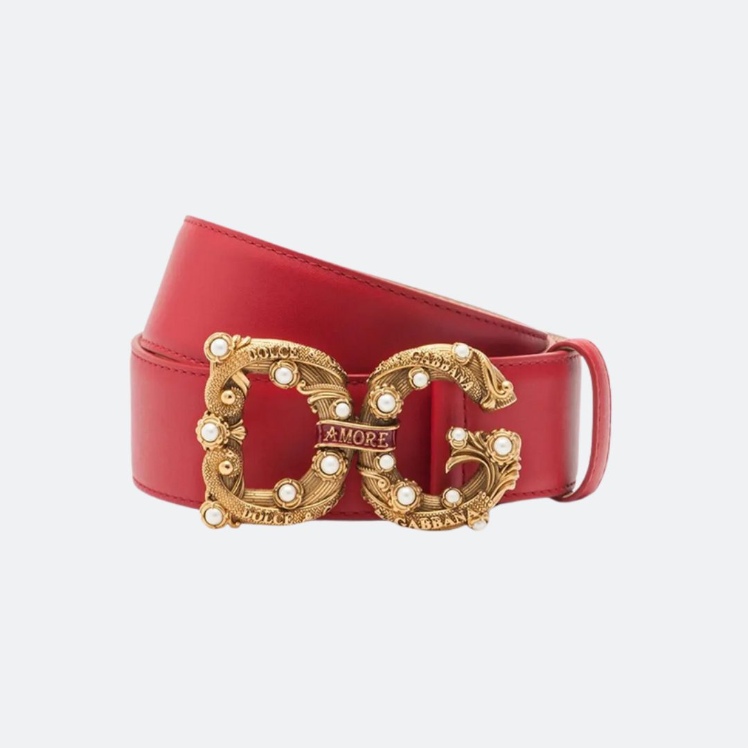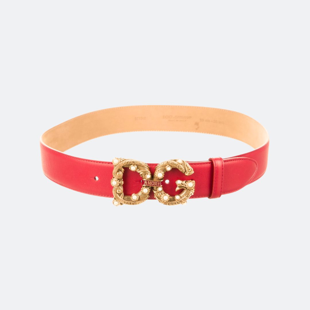 Dolce & Gabbana Red Calfskin Belt with DG Amore Logo