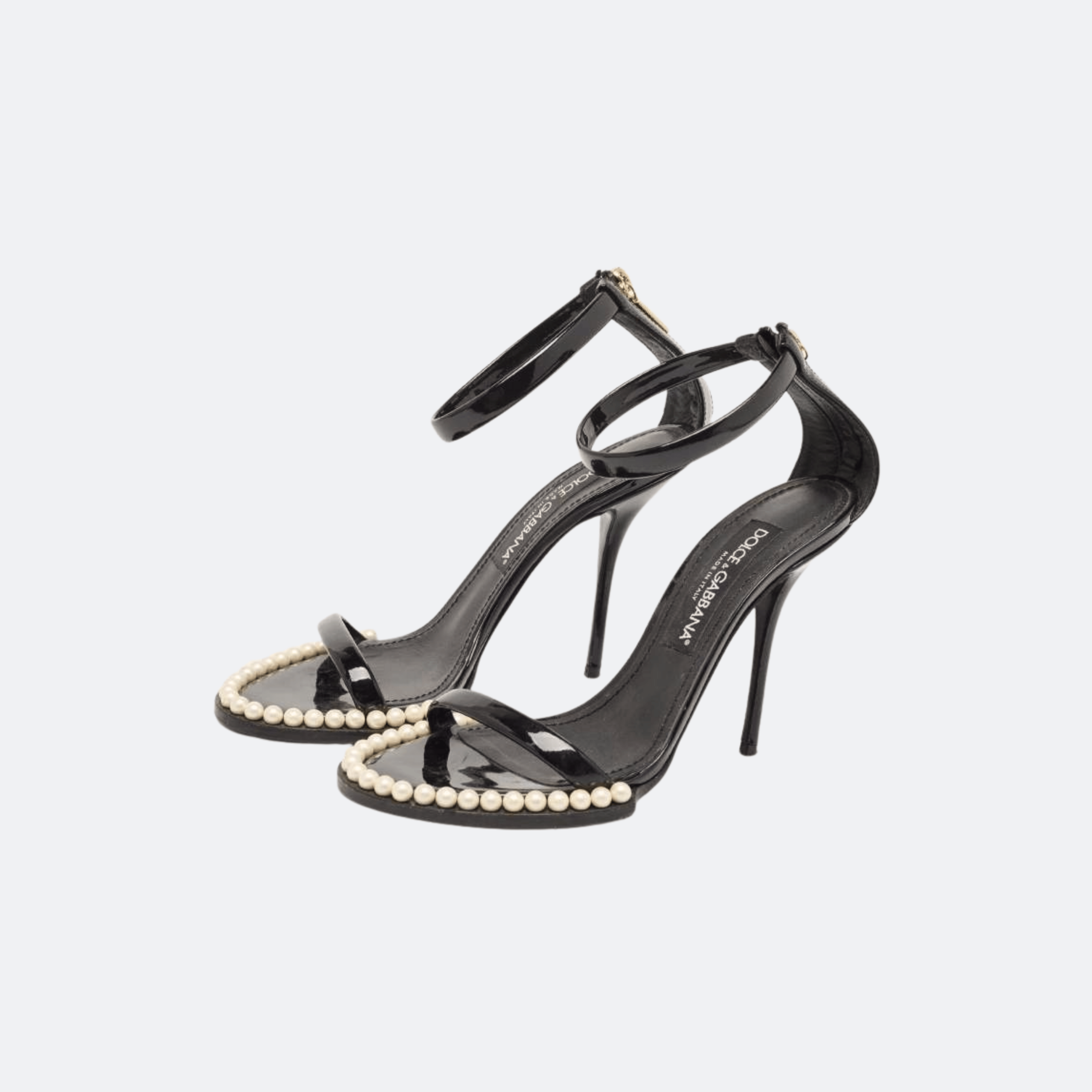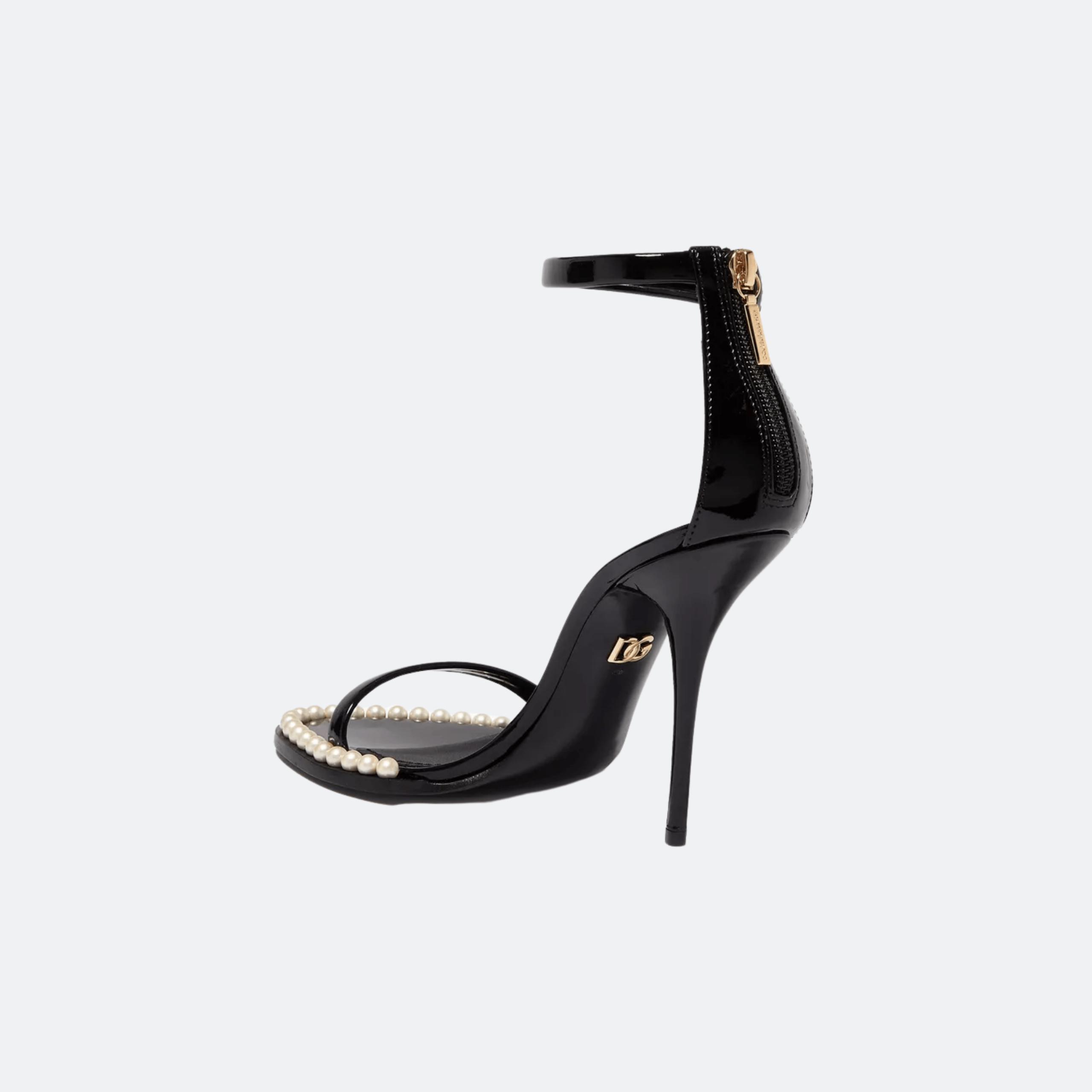Dolce&Gabbana Keira 105mm Patent Leather Pearl Sandals – Black