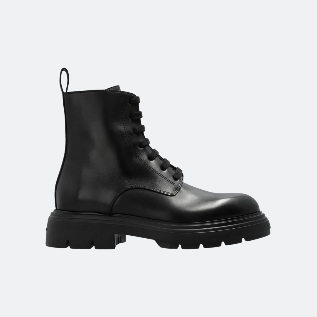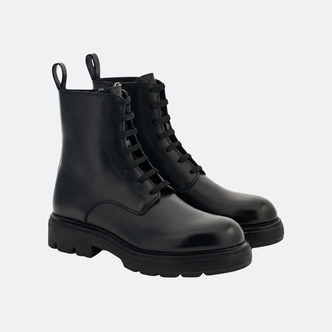 Ferragamo Dionne Black Leather Women Combat Boots