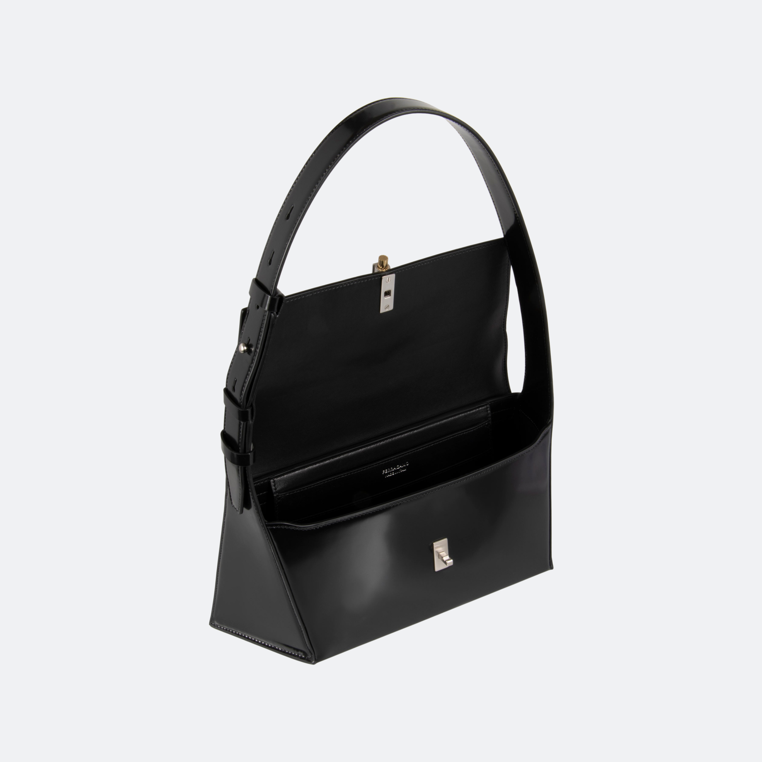 Ferragamo Geometric Black Medium Leather Shoulder Bag