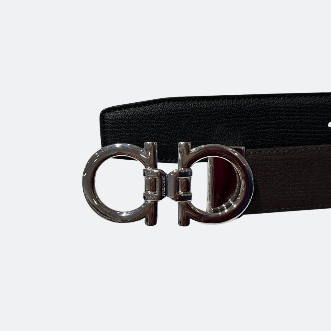 Ferragamo Reversible Black/Brown Belt With Silver Belt Buckle