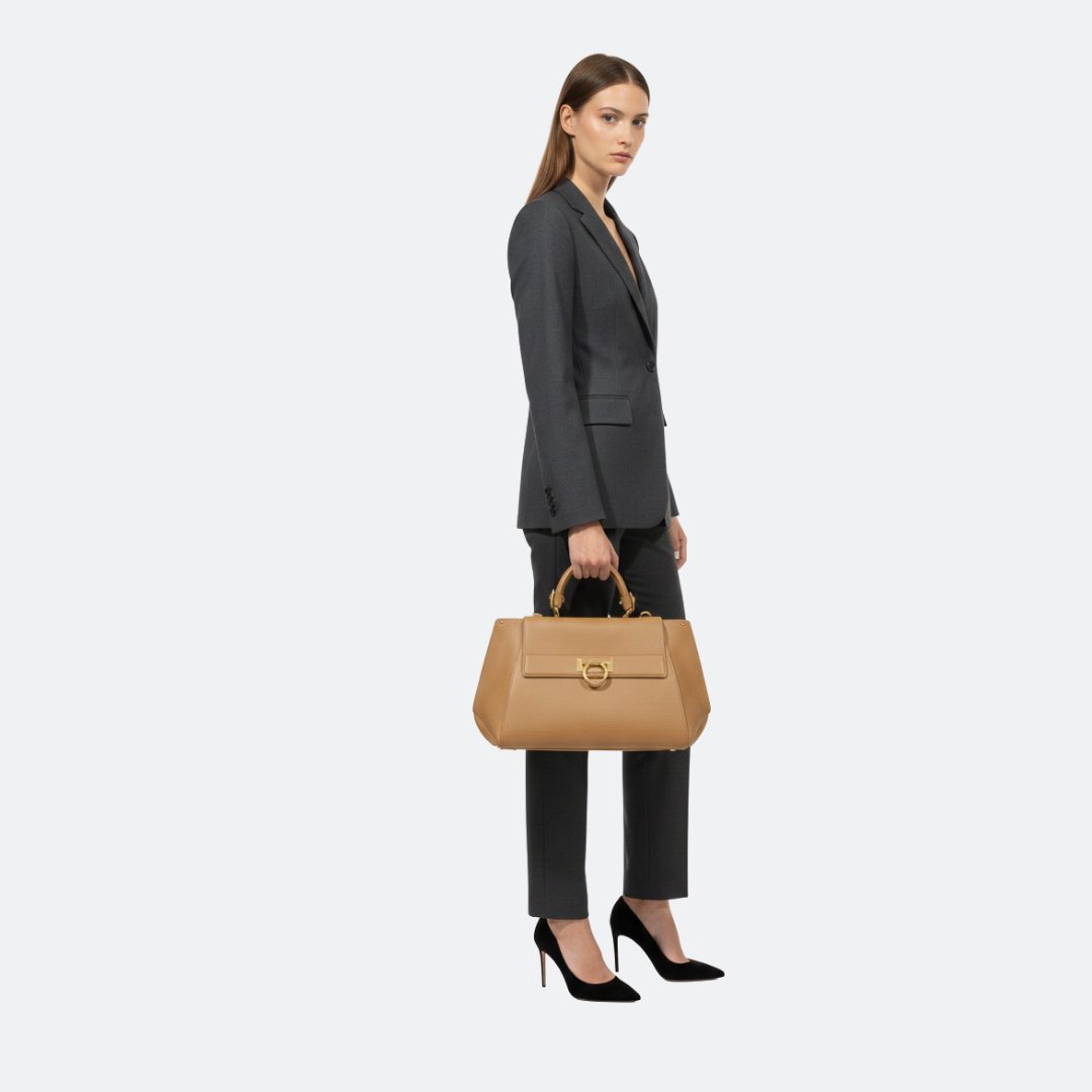 Ferragamo Sofia Camel Medium Leather Top Handle Bag