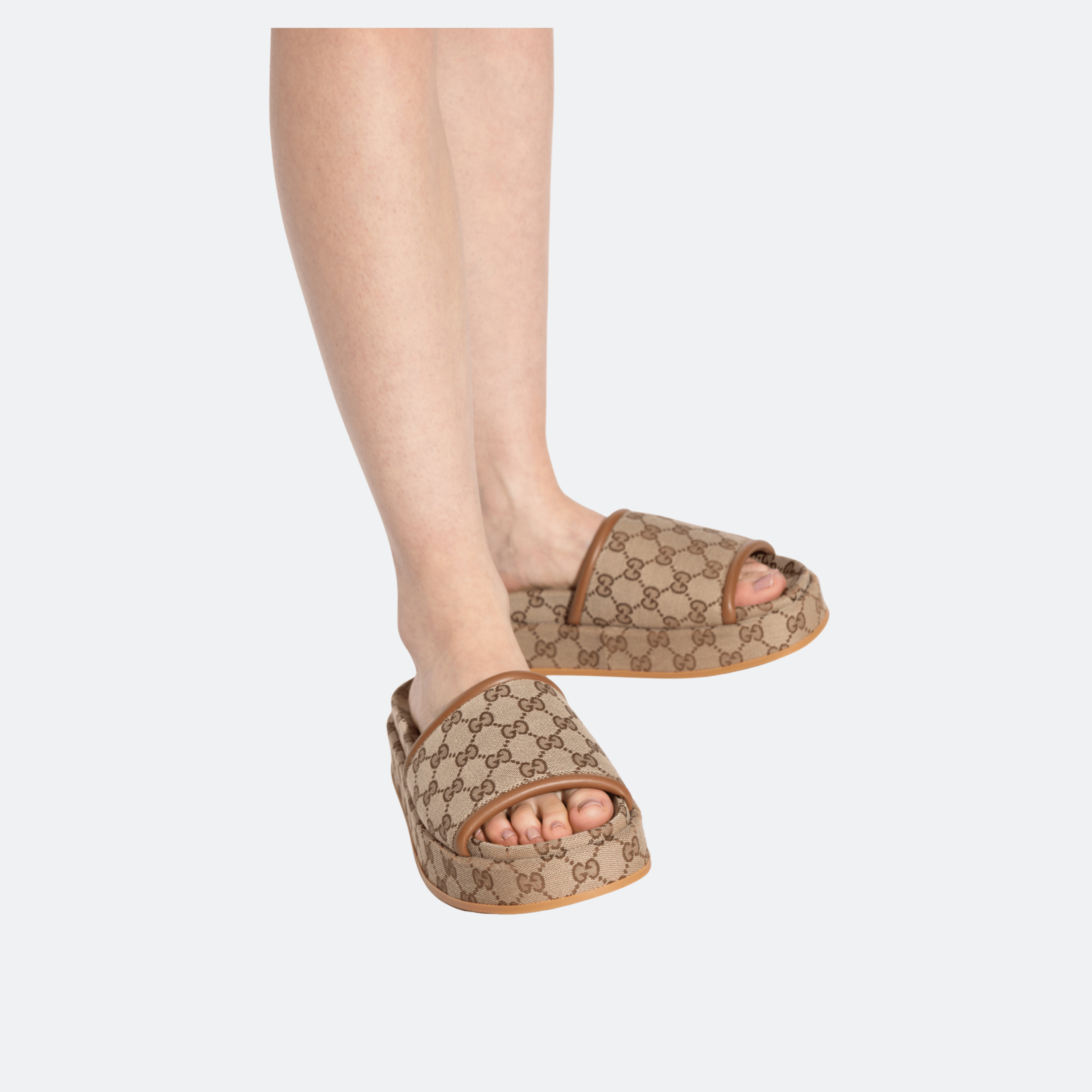 Gucci GG Canvas Slide Platform Sandals – Beige Ebony