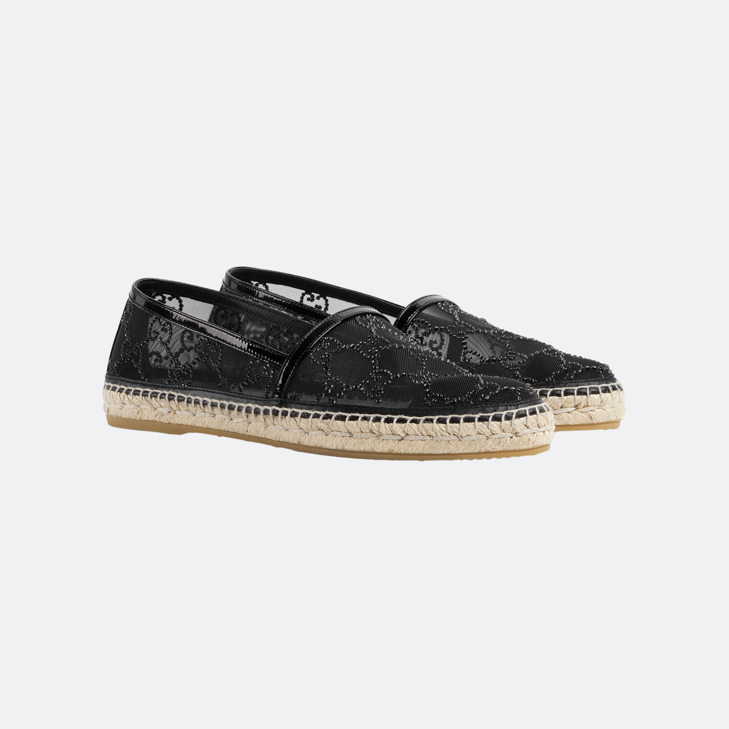Gucci GG Crystal Embellished Espadrille Flats – Black