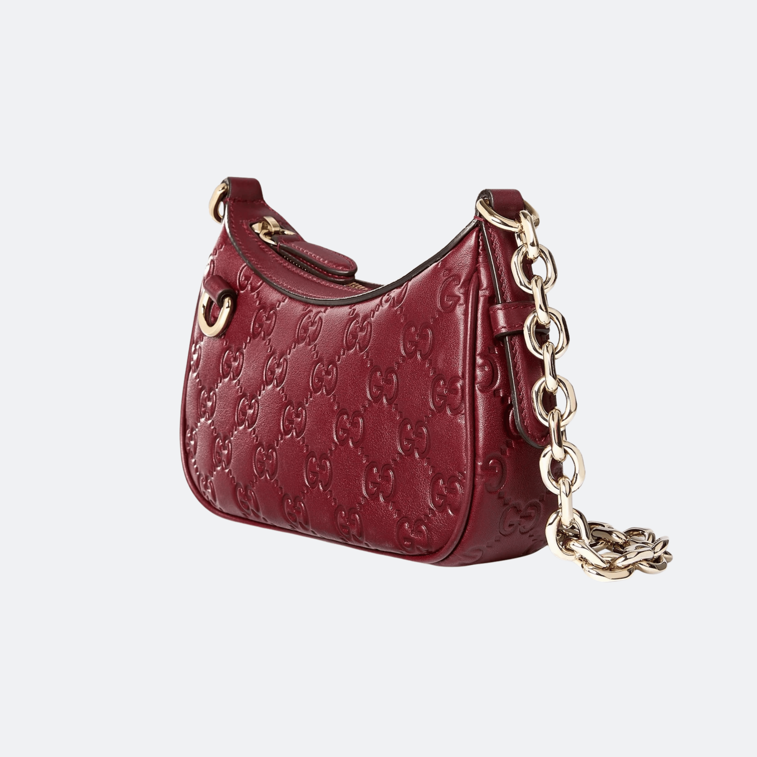 Gucci GG Emblem Mini Leather Shoulder Bag – Burgundy