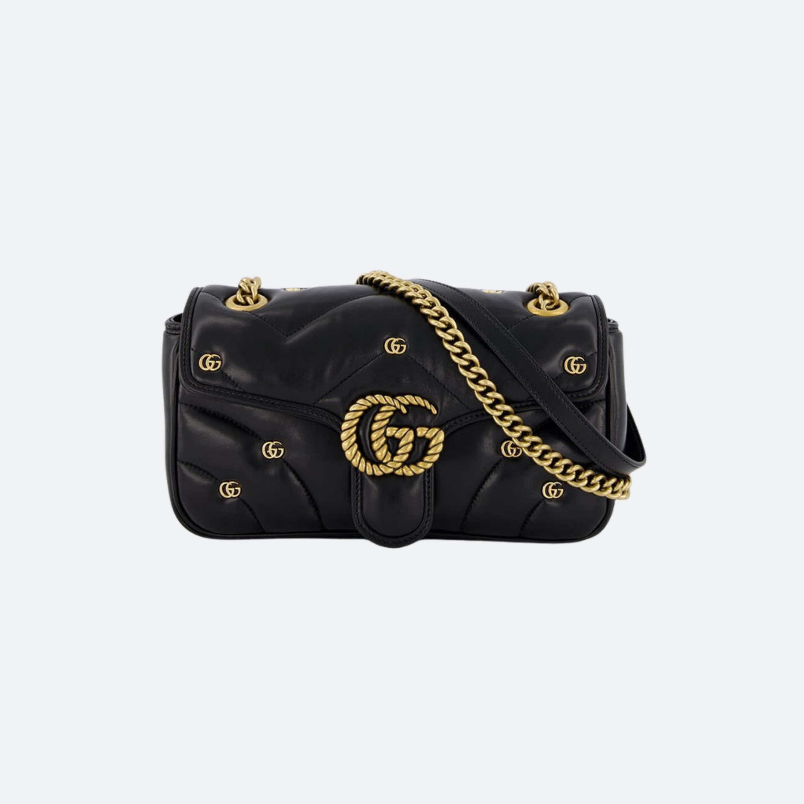 Gucci GG Logo Designed Marmont Black Small Leather Bag