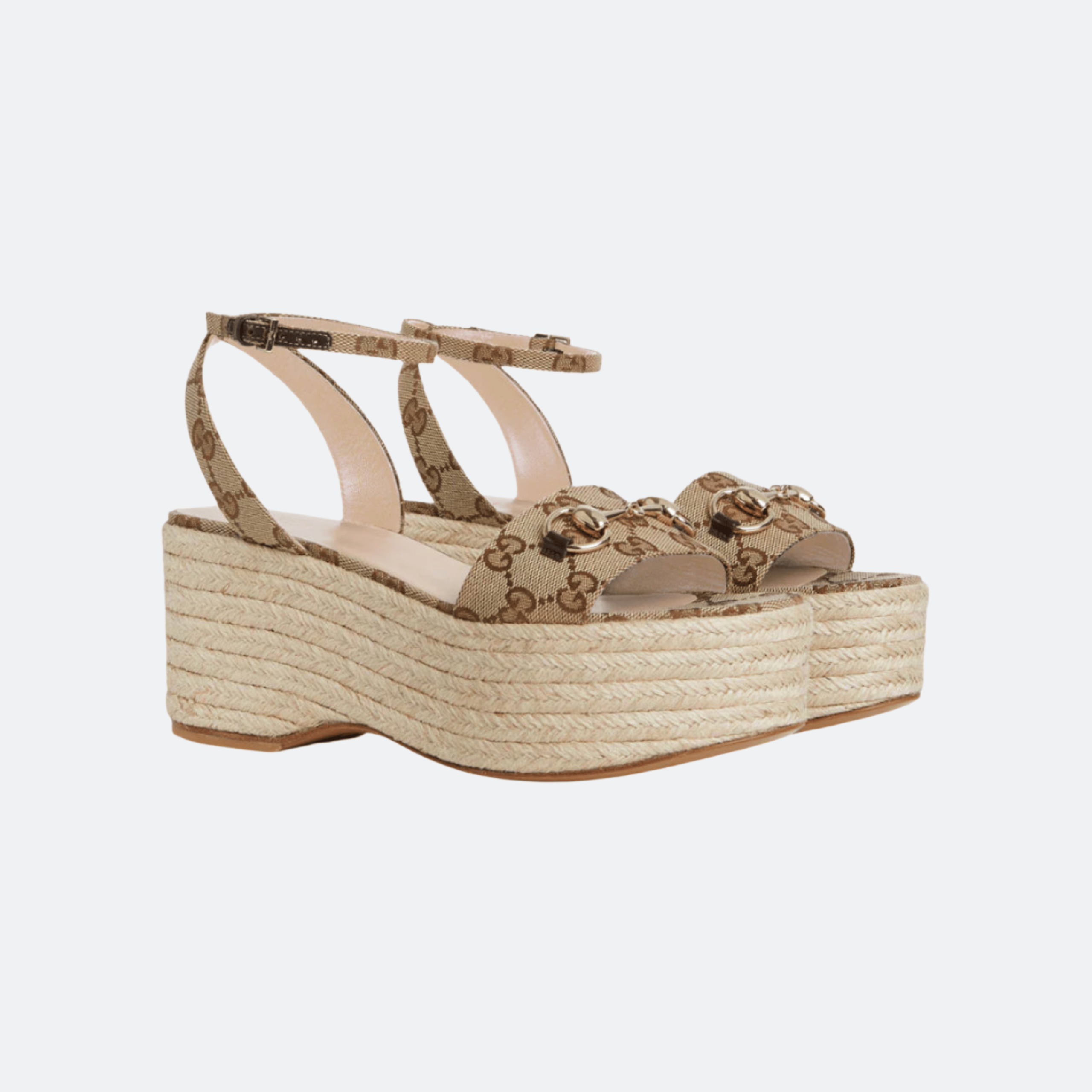 Gucci Horsebit GG Canvas Platform Espadrille Sandal – Beige/Brown