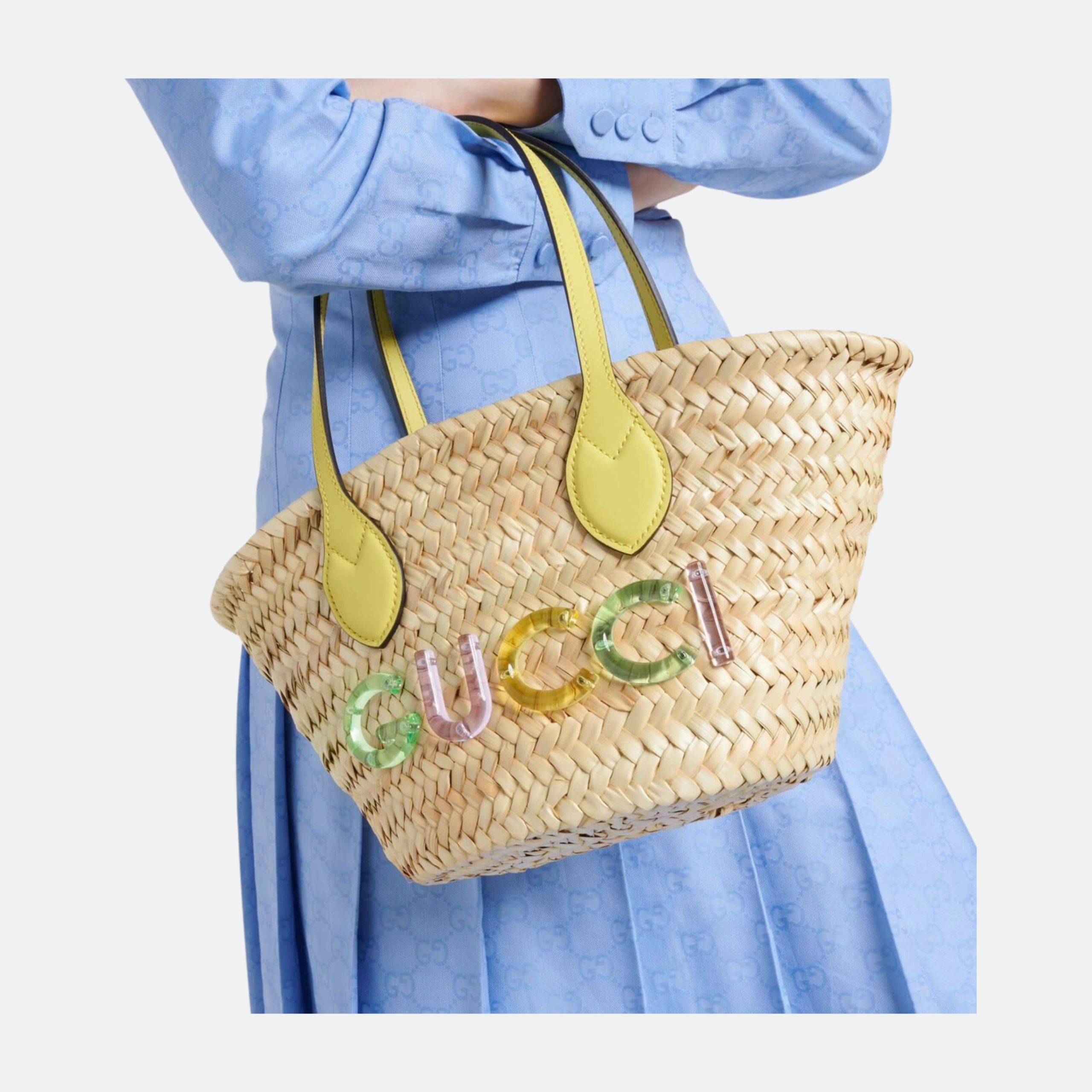 Gucci Logo Small Straw Tote Bag