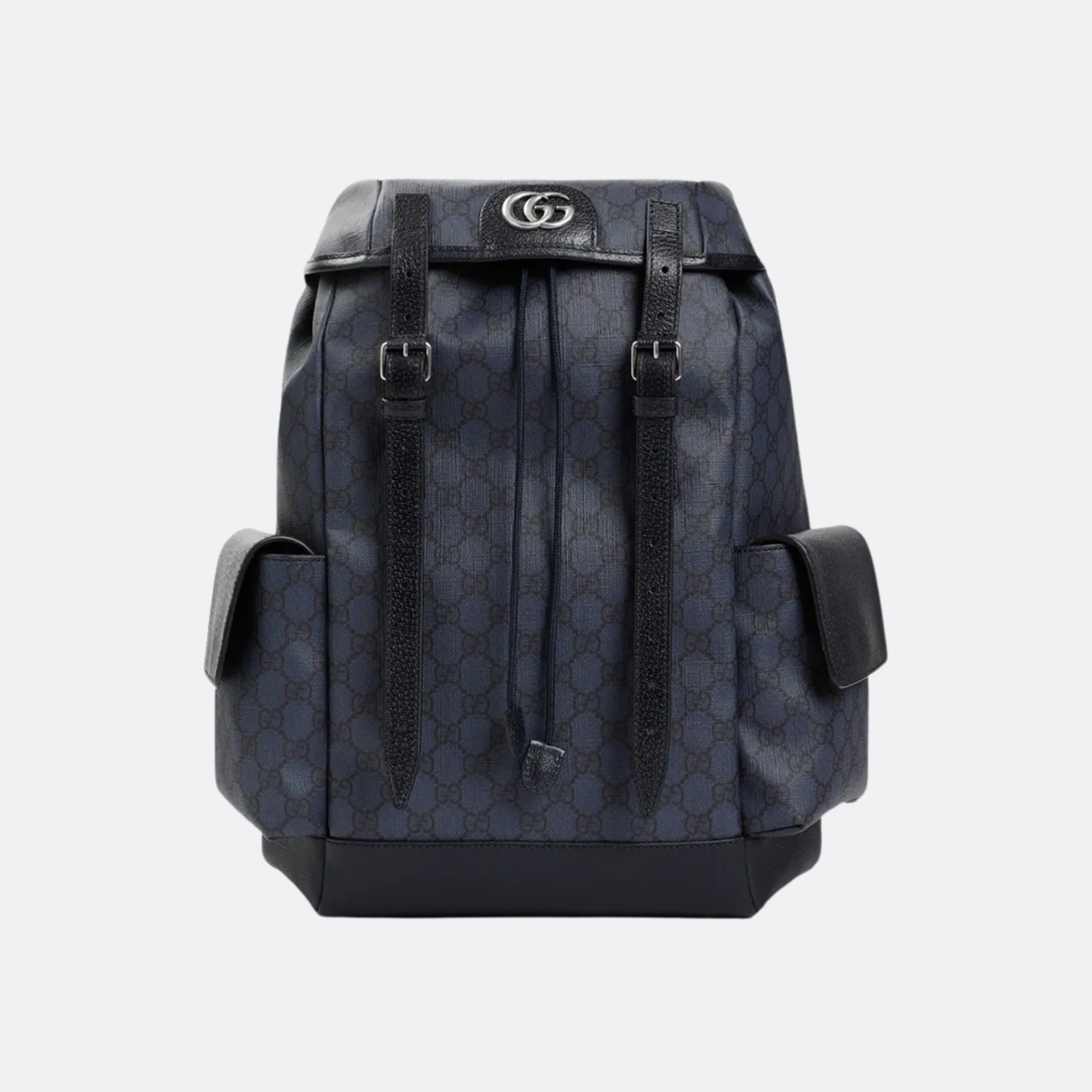 Gucci Supreme Monogram Blue Leather-Canvas Backpack
