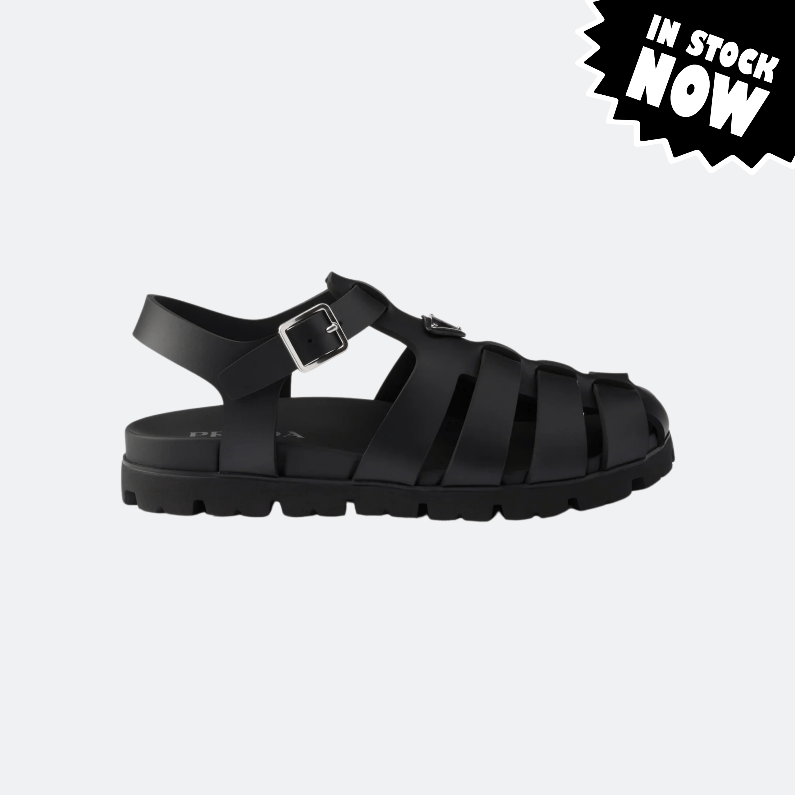 Prada Rubber Fisherman Sandals – Black (38 – In Stock)