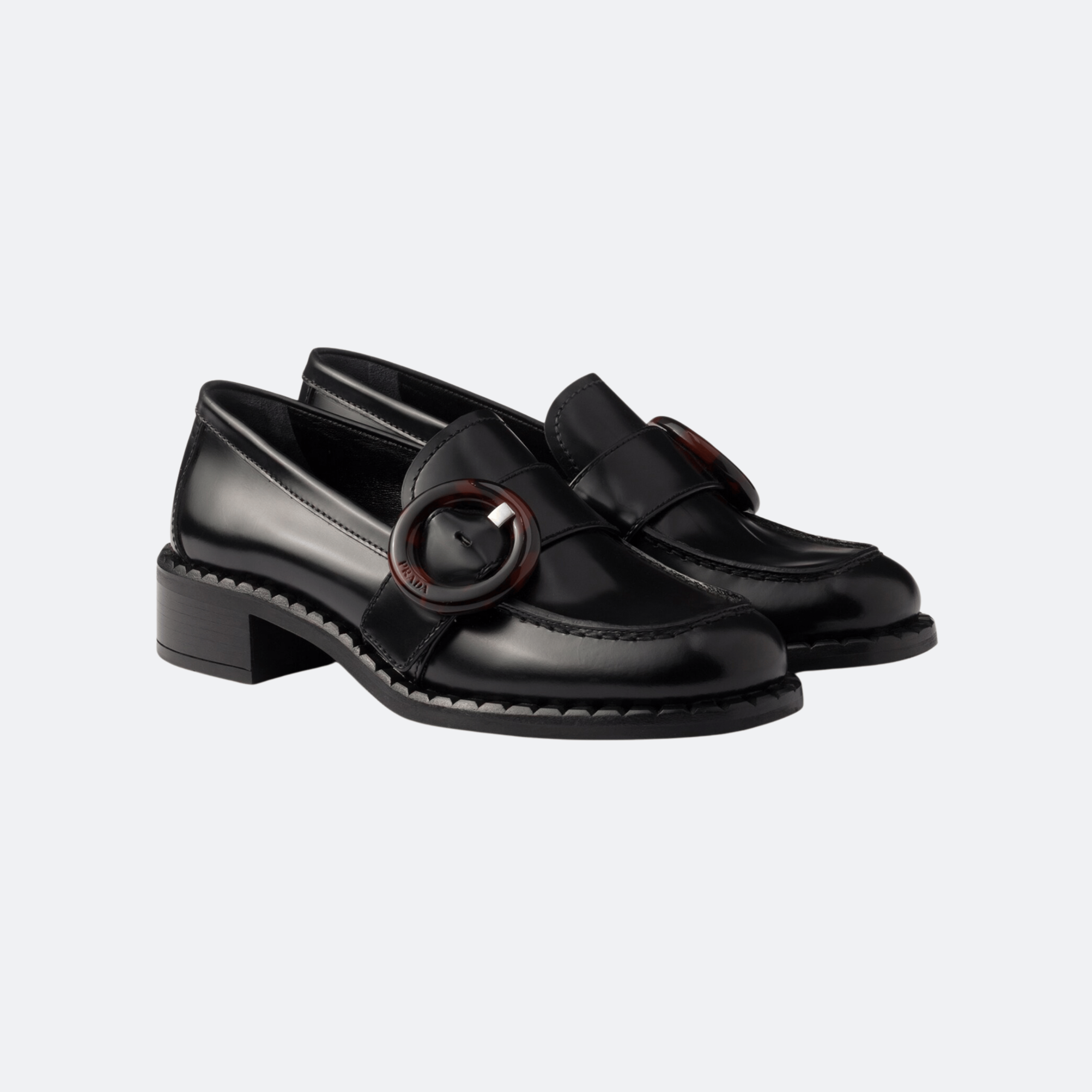 Prada Sienna Patent Leather Buckle Loafers – Black