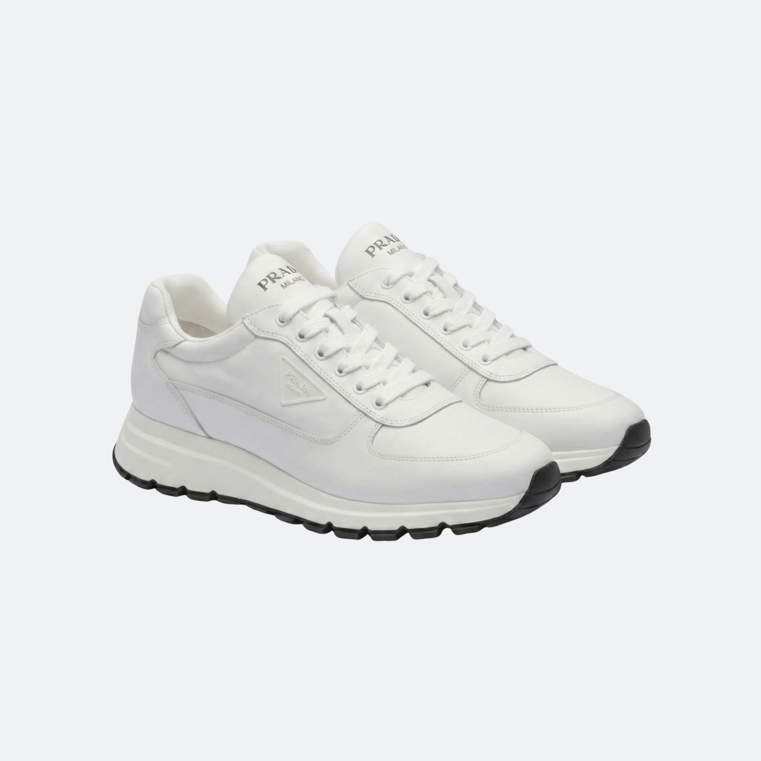 Prada White Triangle Logo White Leather Men Sneakers