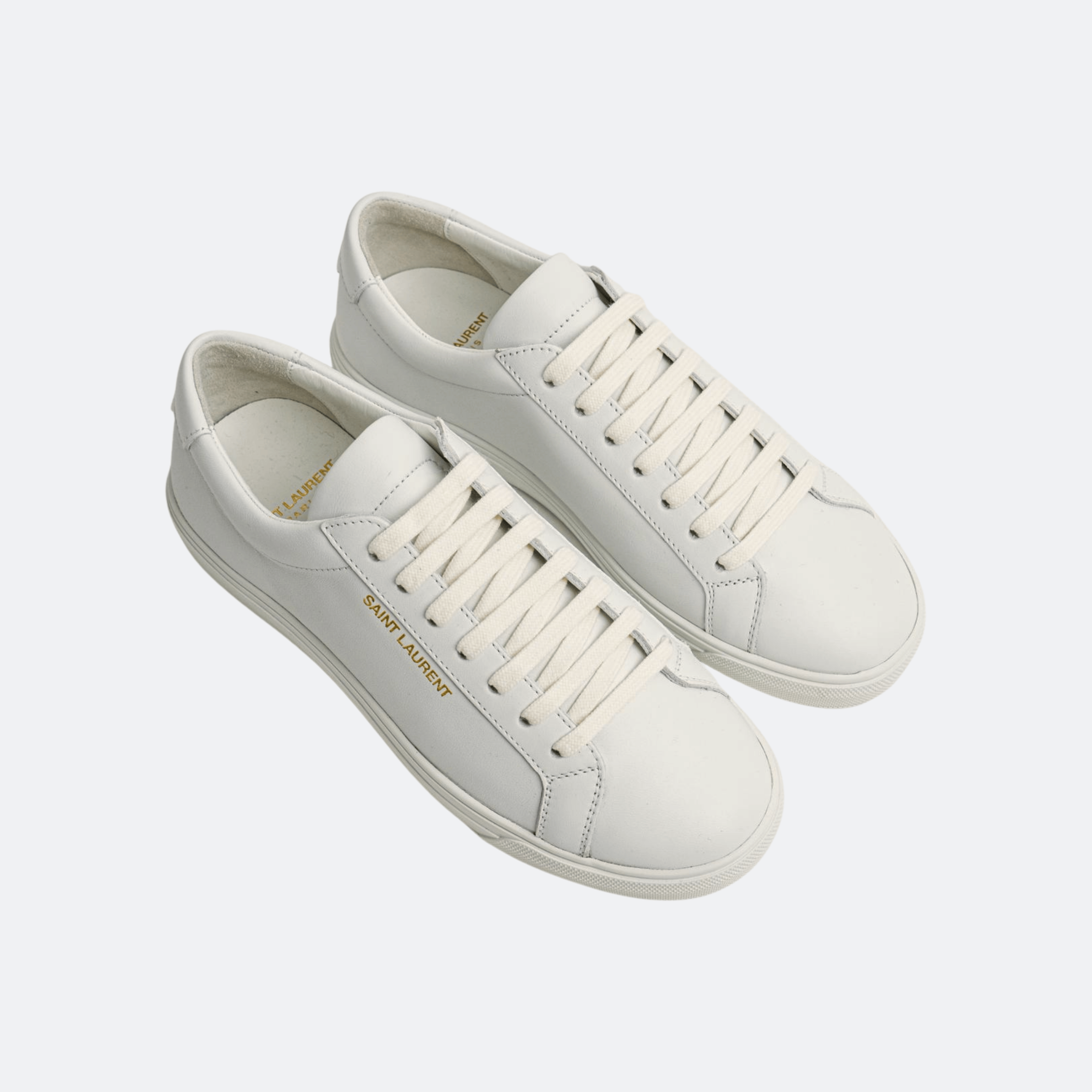 Clean, minimal, and effortlessly refined, the Andy sneakers by Saint Laurent embody modern luxury in its purest form. Designed with a sleek low-top silhouette and subtle gold-tone branding, this style delivers understated elegance that pairs seamlessly with both casual and tailored looks. A timeless essential for a polished everyday wardrobe.
