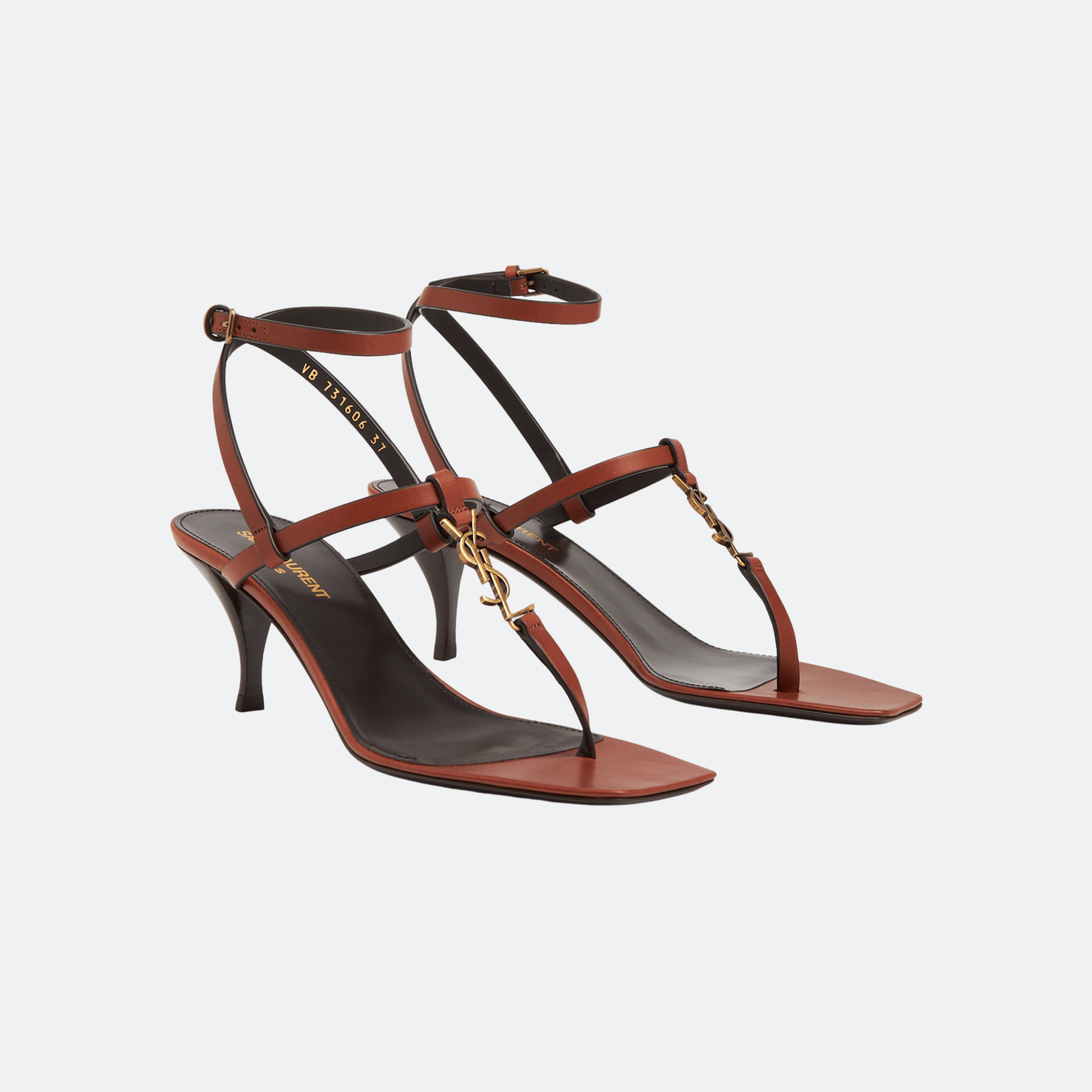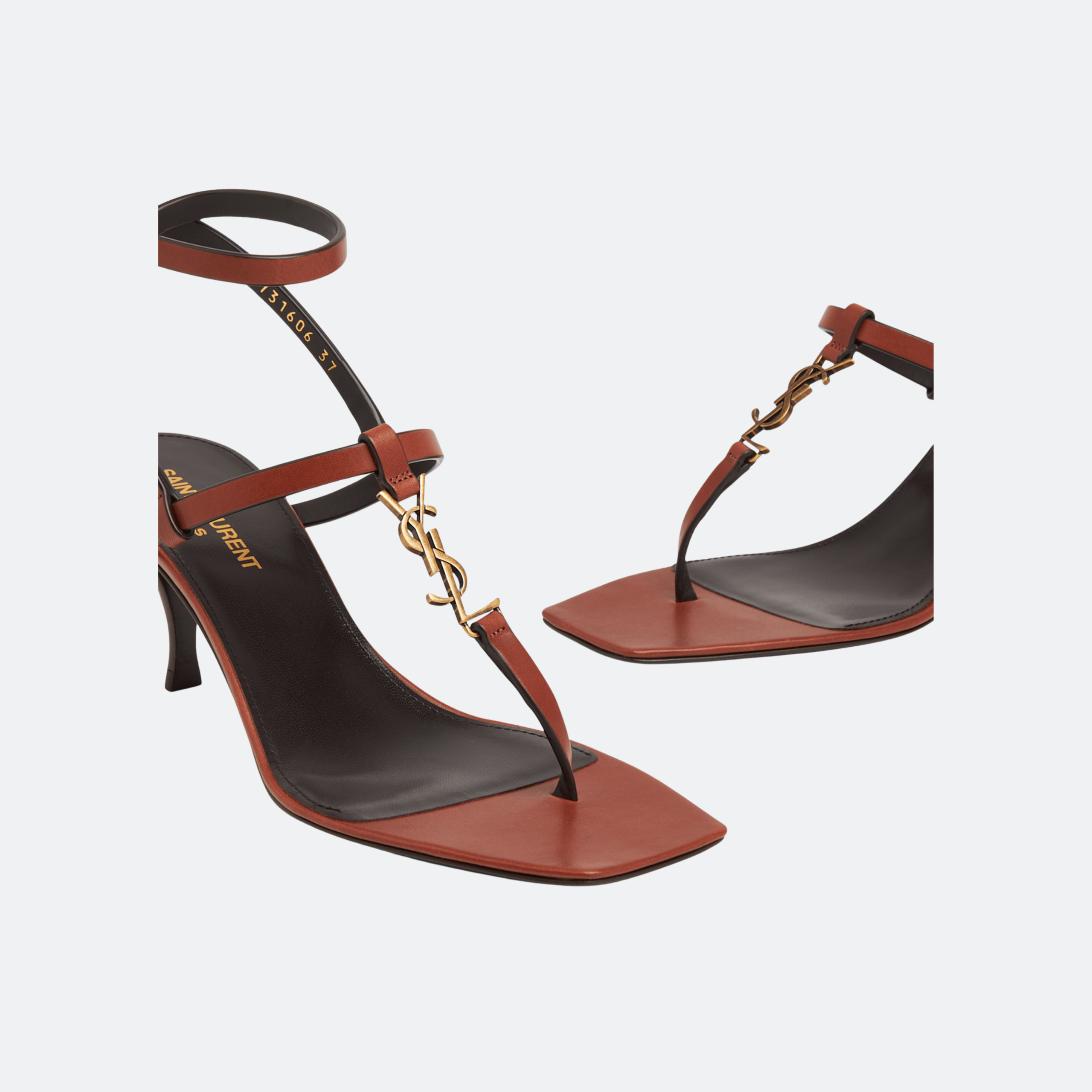 Saint Laurent Cassandre 60 Leather Sandals – Brown