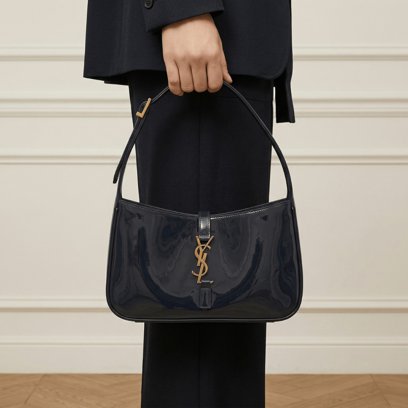 Saint Laurent Le 5 À 7 Patent Leather Shoulder Bag – Blue