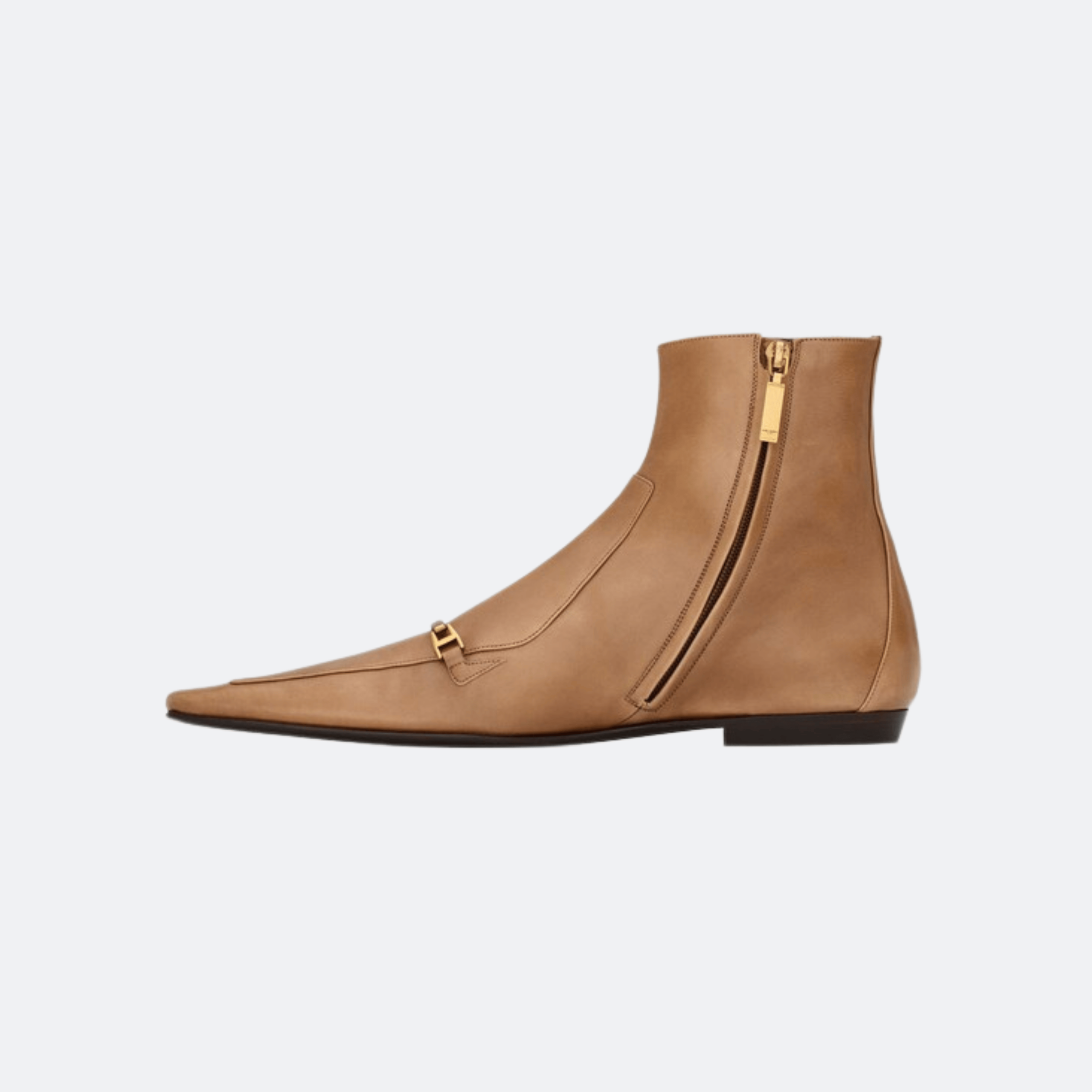 Sleek and understated, the Milton boots by Saint Laurent deliver a refined interpretation of modern minimalism. Designed with a sharp elongated toe and clean ankle silhouette, the style is elevated by subtle gold-tone hardware that adds a discreet signature touch. Effortlessly versatile, it transitions seamlessly from tailored looks to relaxed everyday styling.
