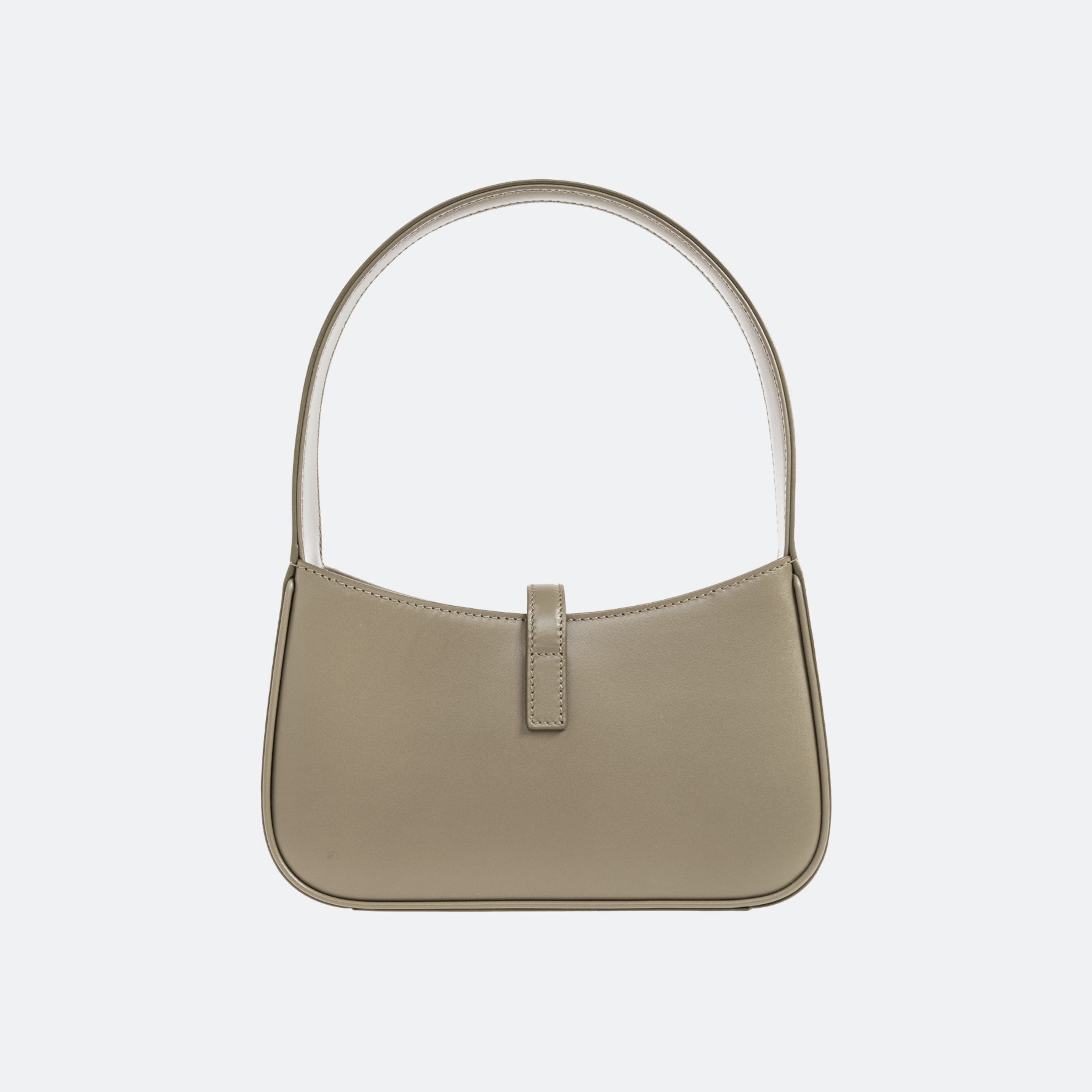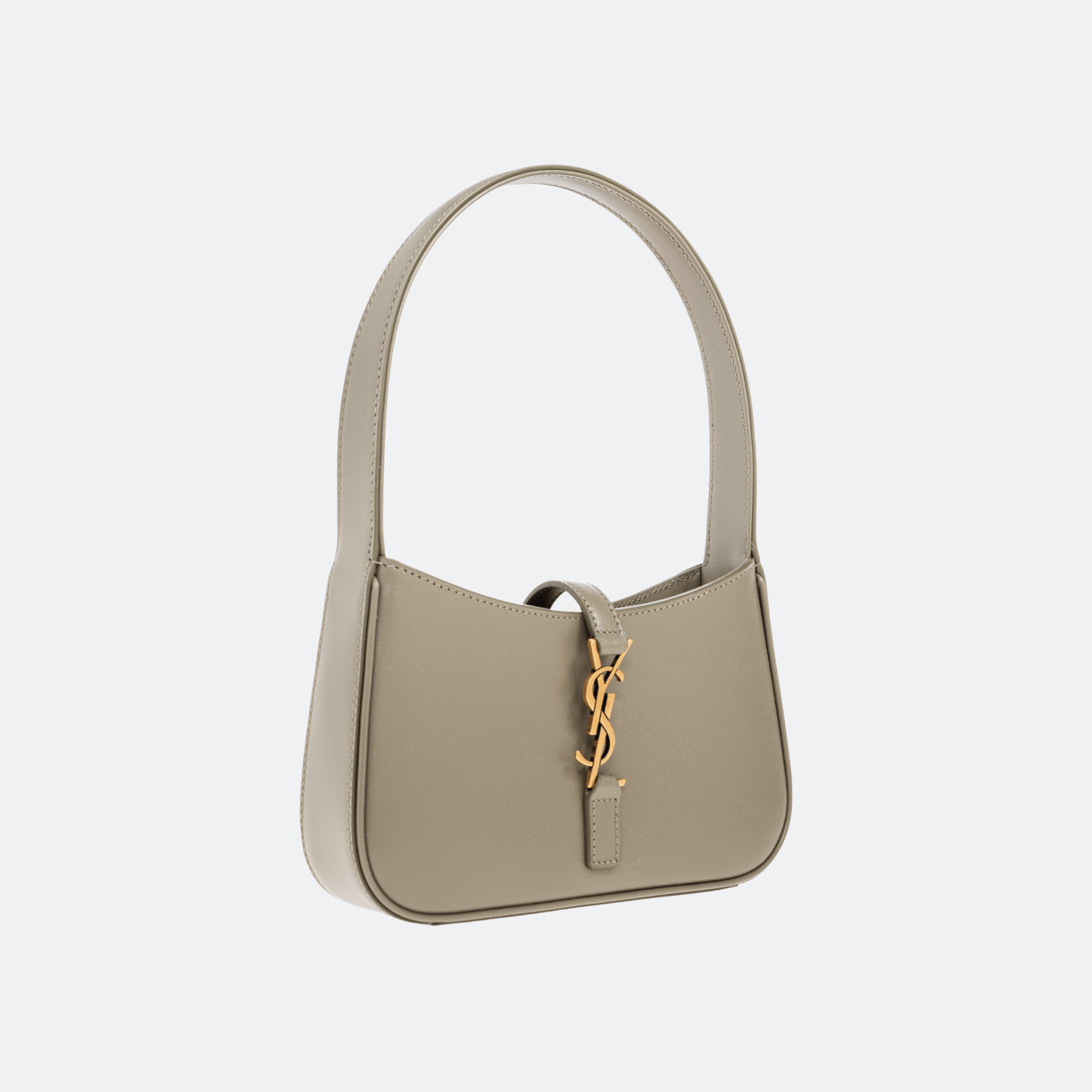 A refined interpretation of Saint Laurent’s iconic hobo silhouette, the Mini Le 5 à 7 bag is crafted from smooth calfskin leather in an elegant taupe tone and finished with the signature gold-tone YSL Cassandre logo closure. Its structured yet softly curved shape, slim shoulder strap, and compact proportions make it a sophisticated day-to-evening essential, perfectly balancing minimalism and Parisian luxury.