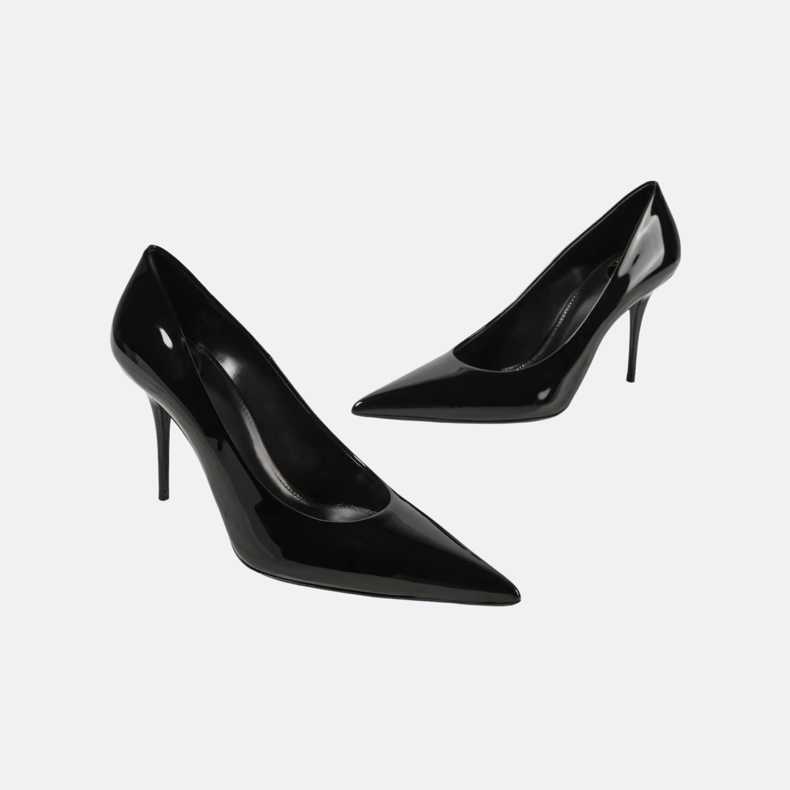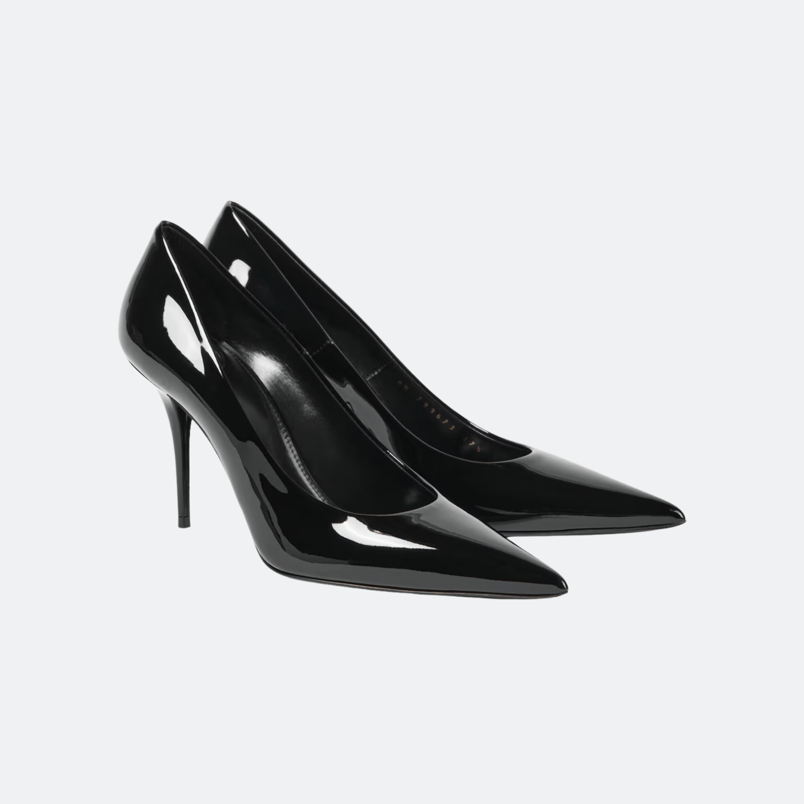 Timeless and sharply refined, the Norma 9,5 cm pumps by Saint Laurent embody classic Parisian elegance. Defined by a sleek pointed toe and a slender stiletto heel, this silhouette delivers effortless sophistication with a bold, feminine edge. The glossy patent finish enhances its statement appeal, making it an essential piece for both formal and evening wear.
