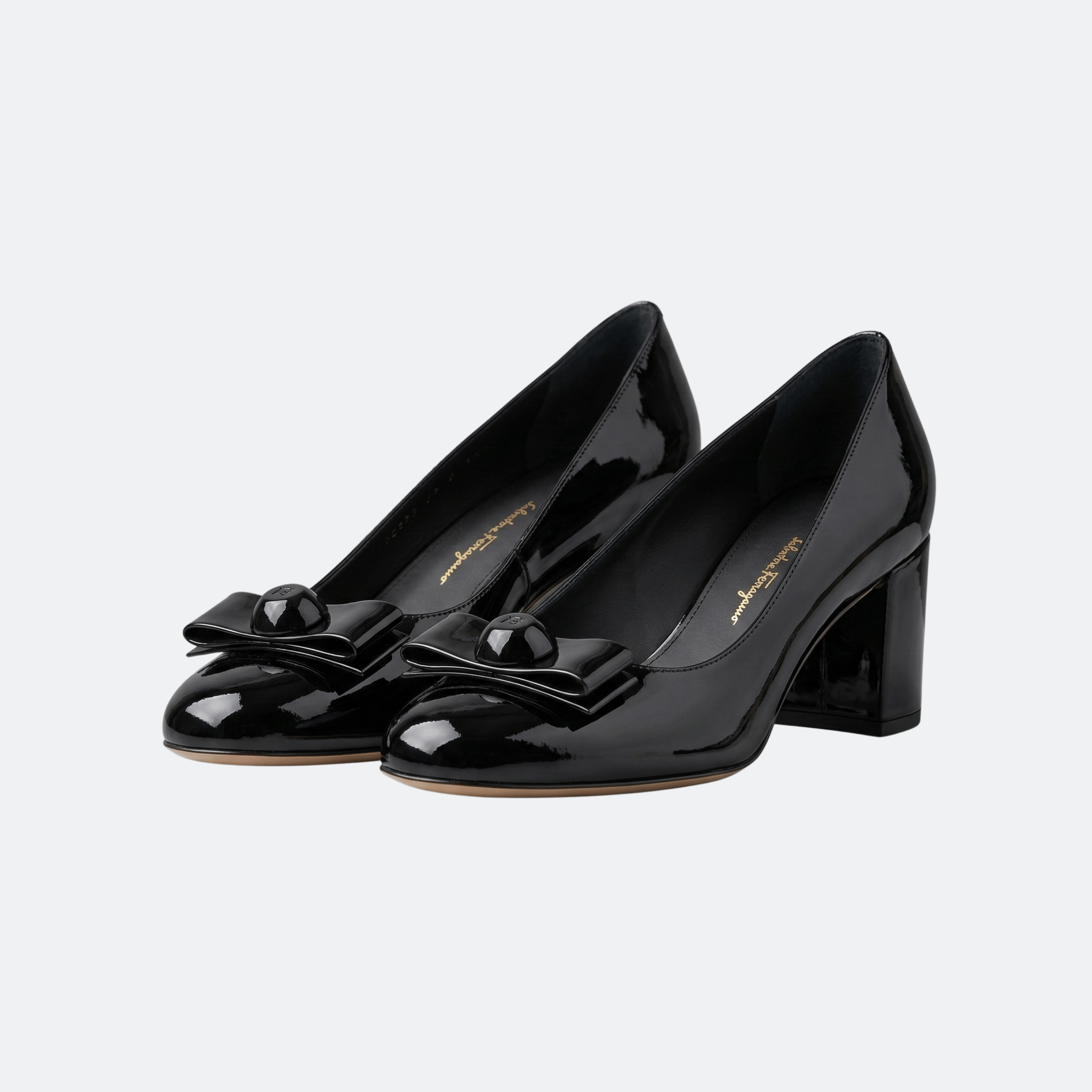 Salvatore Ferragamo Patent Leather Akata 55 Pumps – Black