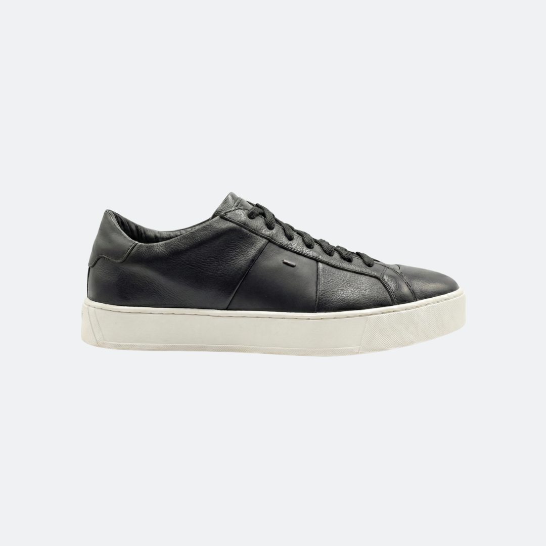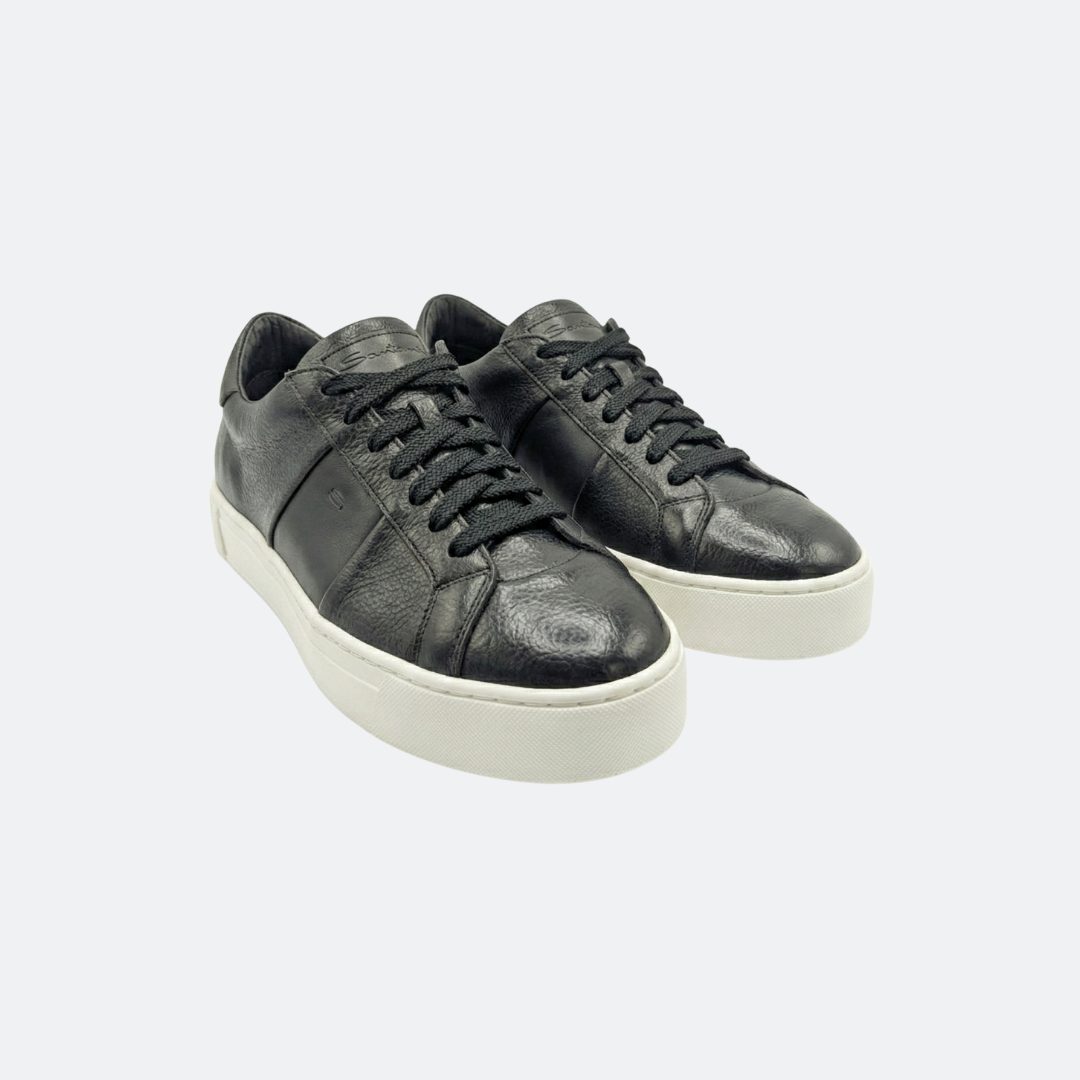 Santoni All Black Men Leather Sneakers