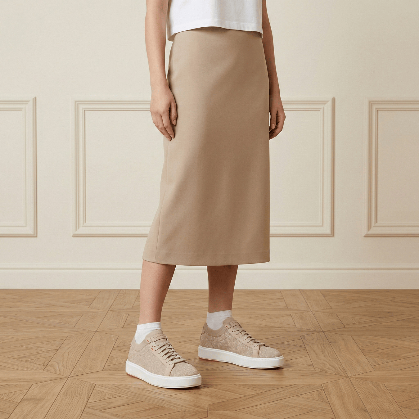 Santoni Knit & Leather Low-Top Sneaker – Beige