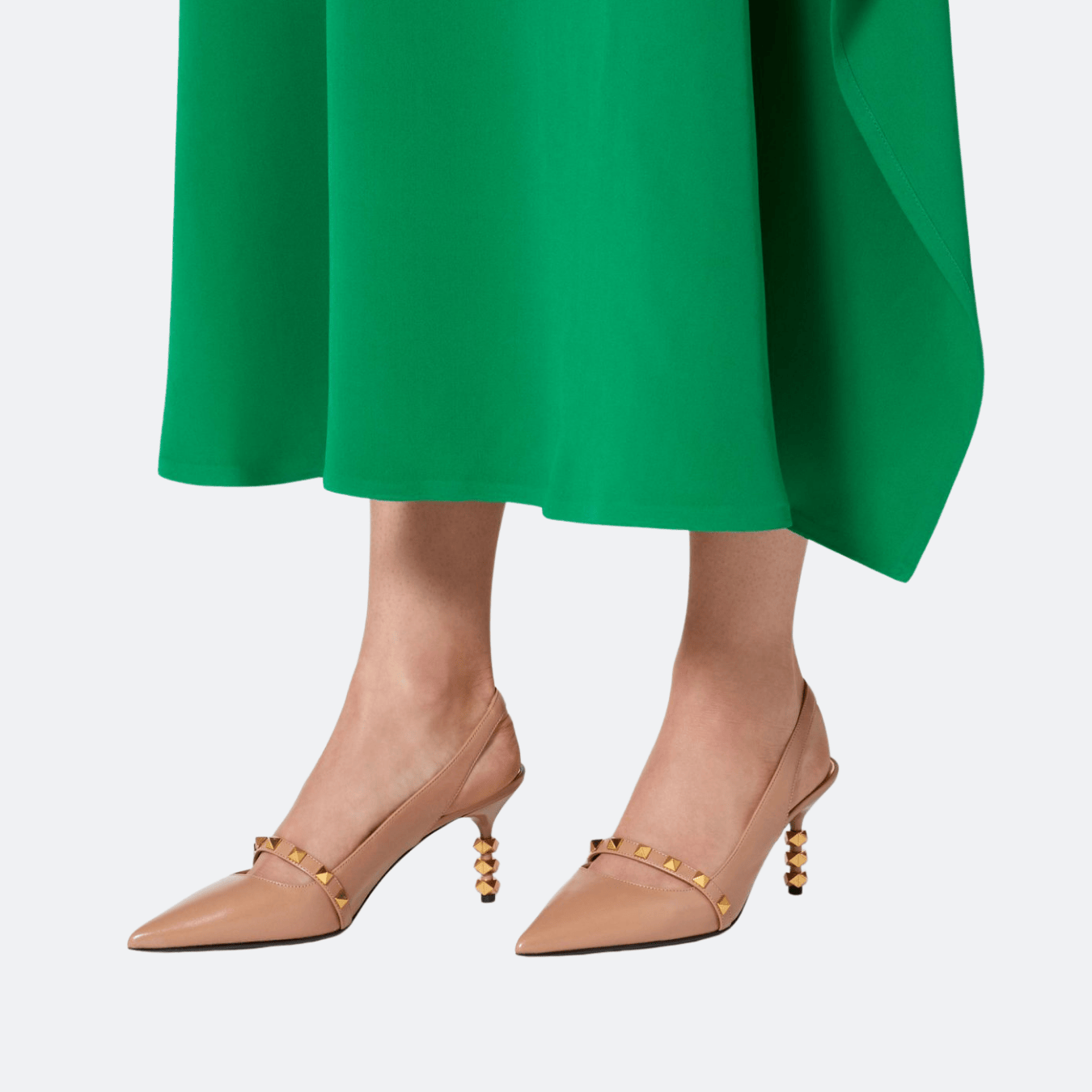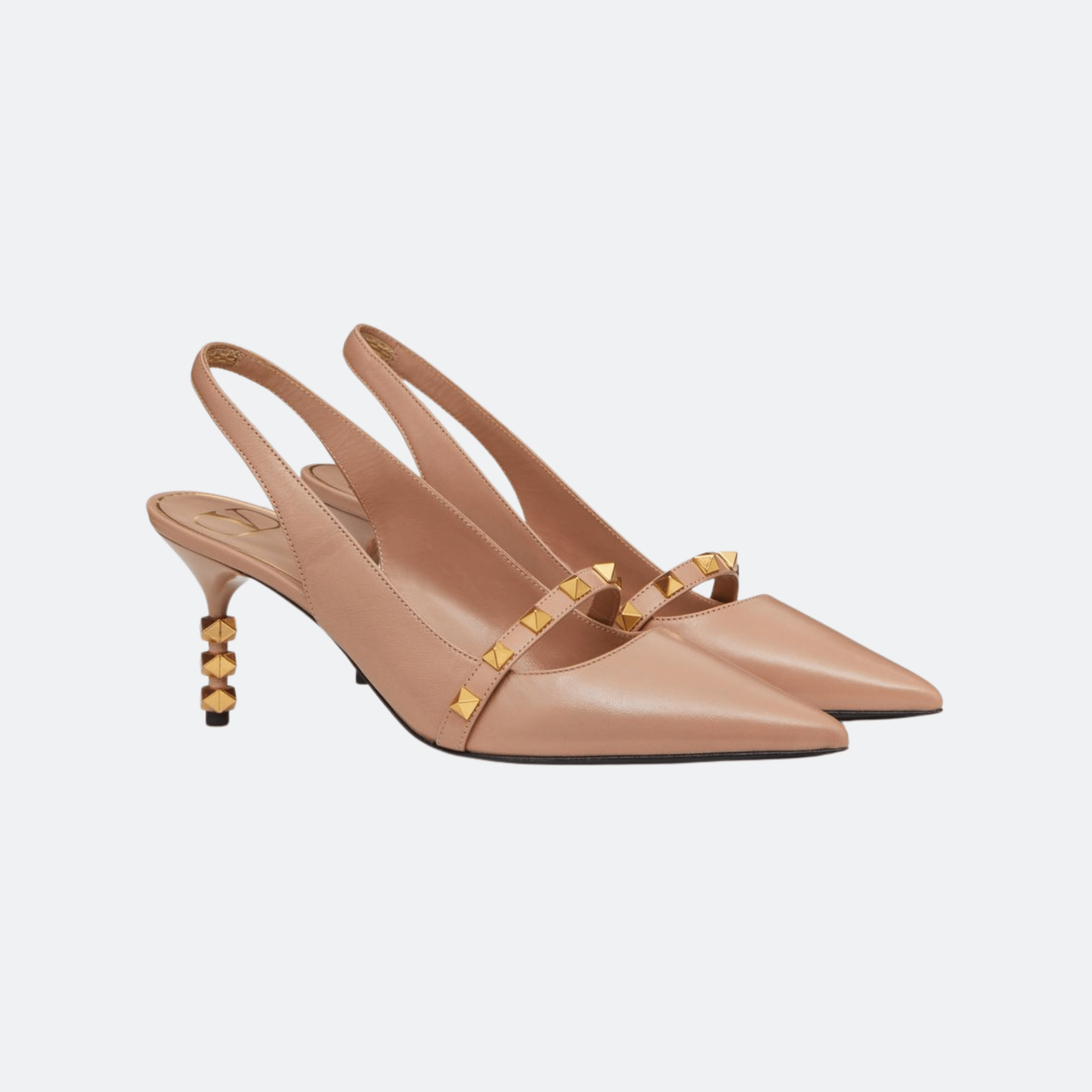 Valentino Garavani Rockstud Slingback Pump With Sculpted Heel In Kidskin 70 Mm – Rose Nude