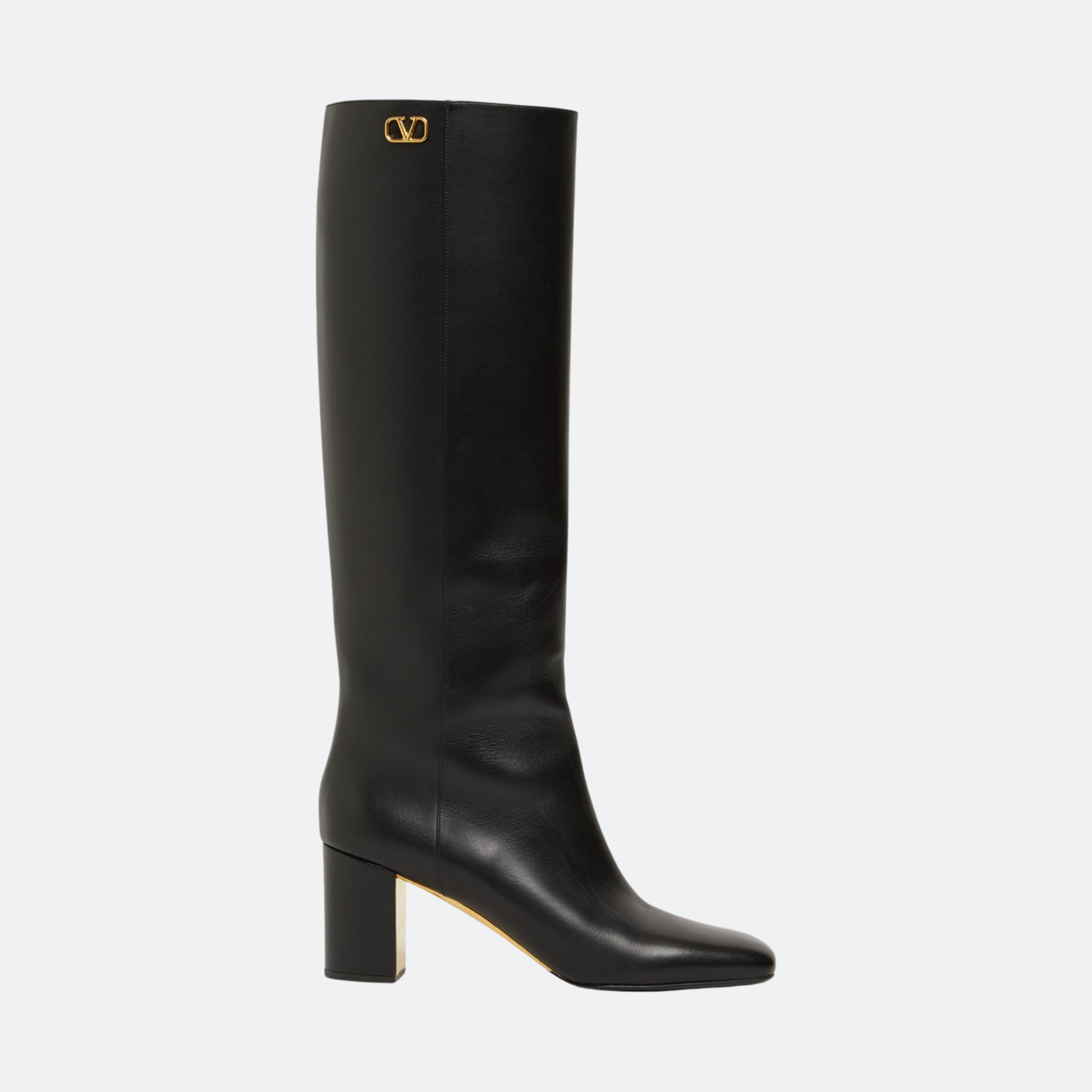 Valentino Garavani V-Logo Black Leather Knee-High Boots